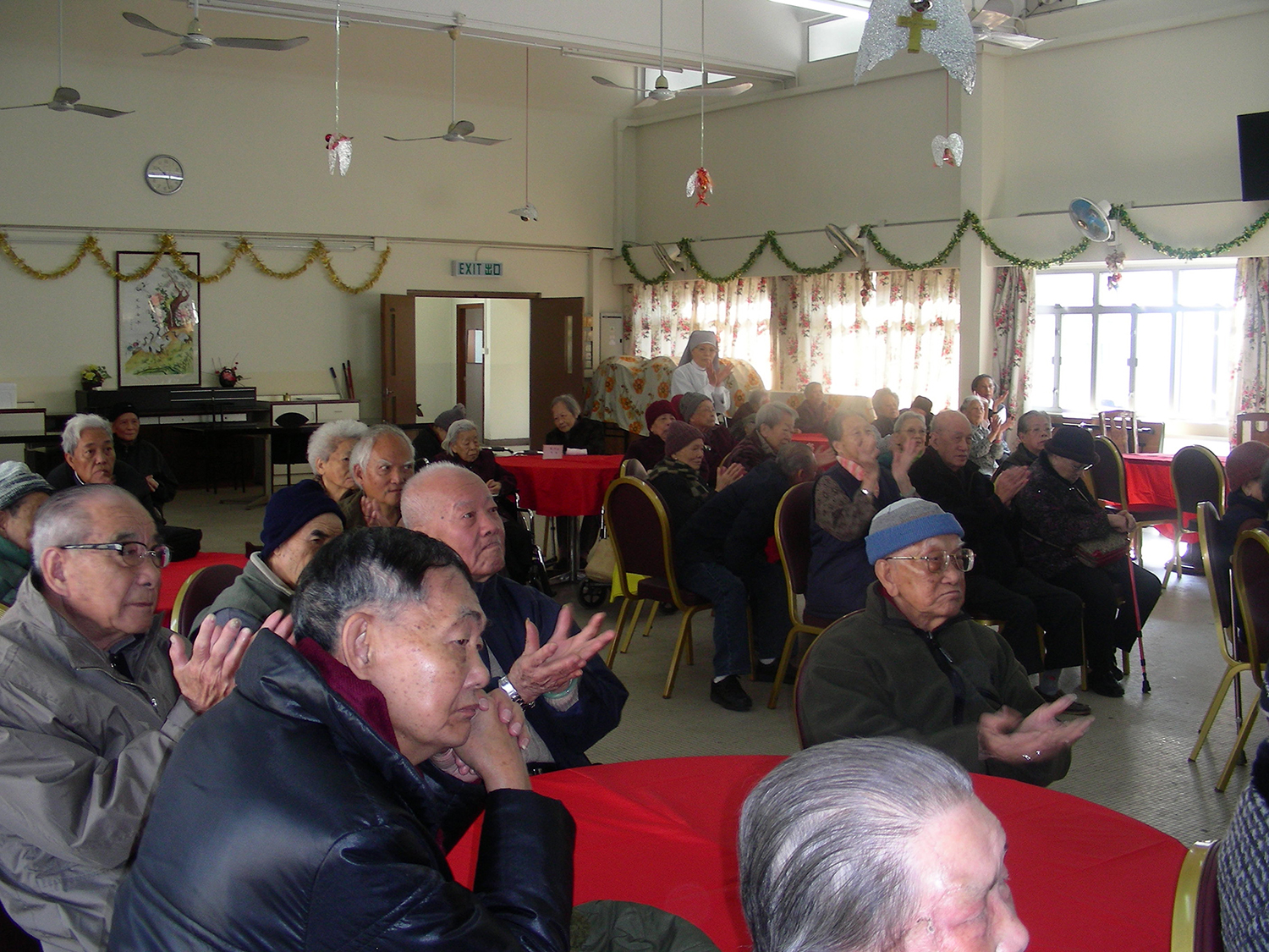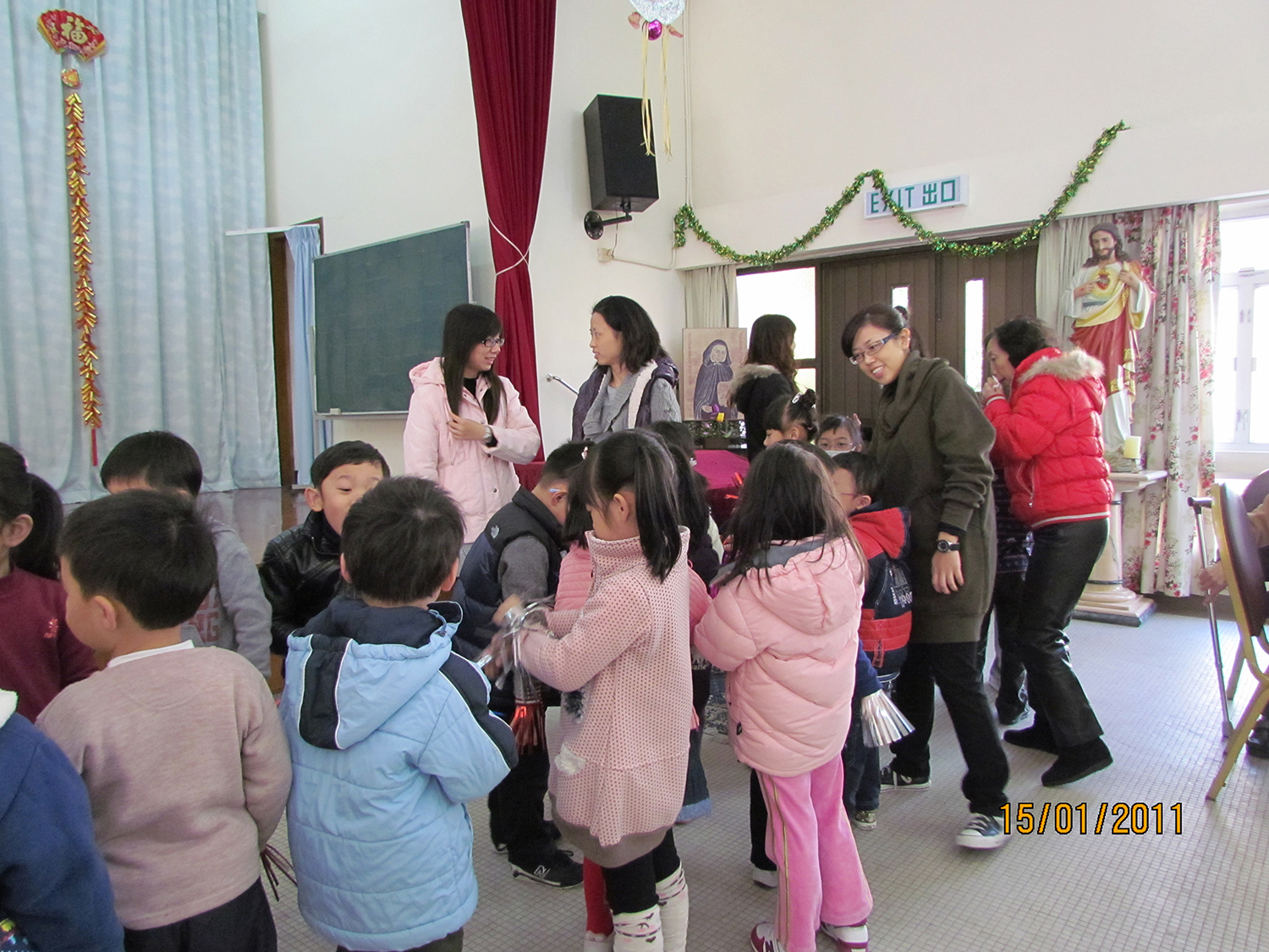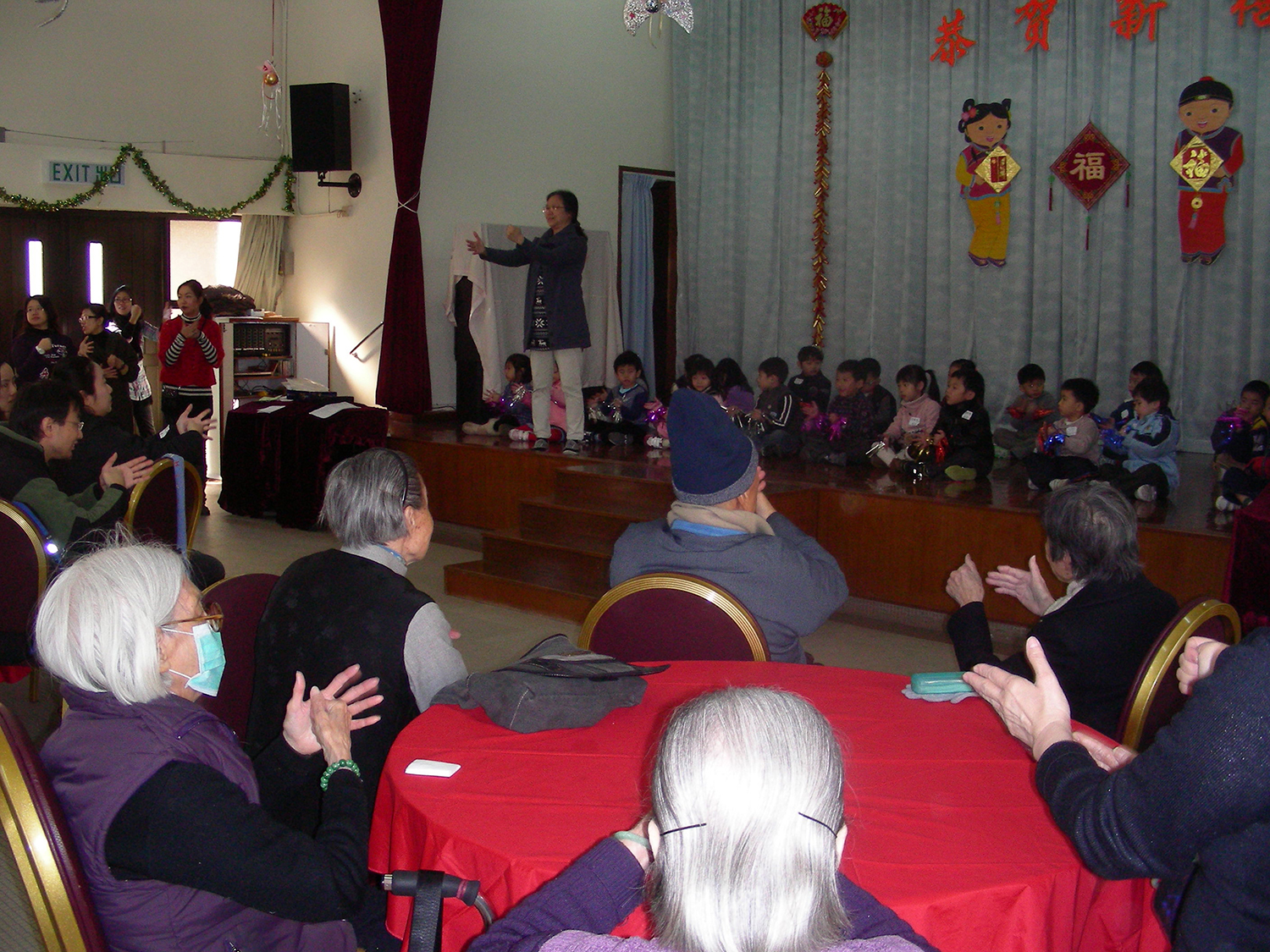 2011年1月15日(星期六)上午,家教會與本園宗教組合辦「家校同心表關懷~親子探訪護老院」活動。我們在10時到達黃竹坑聖瑪利安老院。大家安坐在禮堂,由司儀馮淑媛老師及家教會委員王瑞紅女士帶領小朋友頌唱-讚美主及耶穌喜愛小孩像愛我等歌曲來感謝天主。熱身表演後,孩子們蹦蹦跳地表演活力健康操,盡顯個人活力。再透過「敲咚咚」音樂替公公婆婆們搥骨,場面十分溫馨。葉主任和余麗芳老師也帶動全場齊做「十巧操」運動。接著由關歆老師帶領家長及全體老師一起向公公婆婆玩「金兔遊戲」,遊戲過後家長和小朋友一起送給長者們一份「愛心禮物」,讓公公婆婆感受到我們對他們的關懷。最後由工作人員帶領參觀院舍的設施,大家也懷着愉快的心情結束這天的活動。