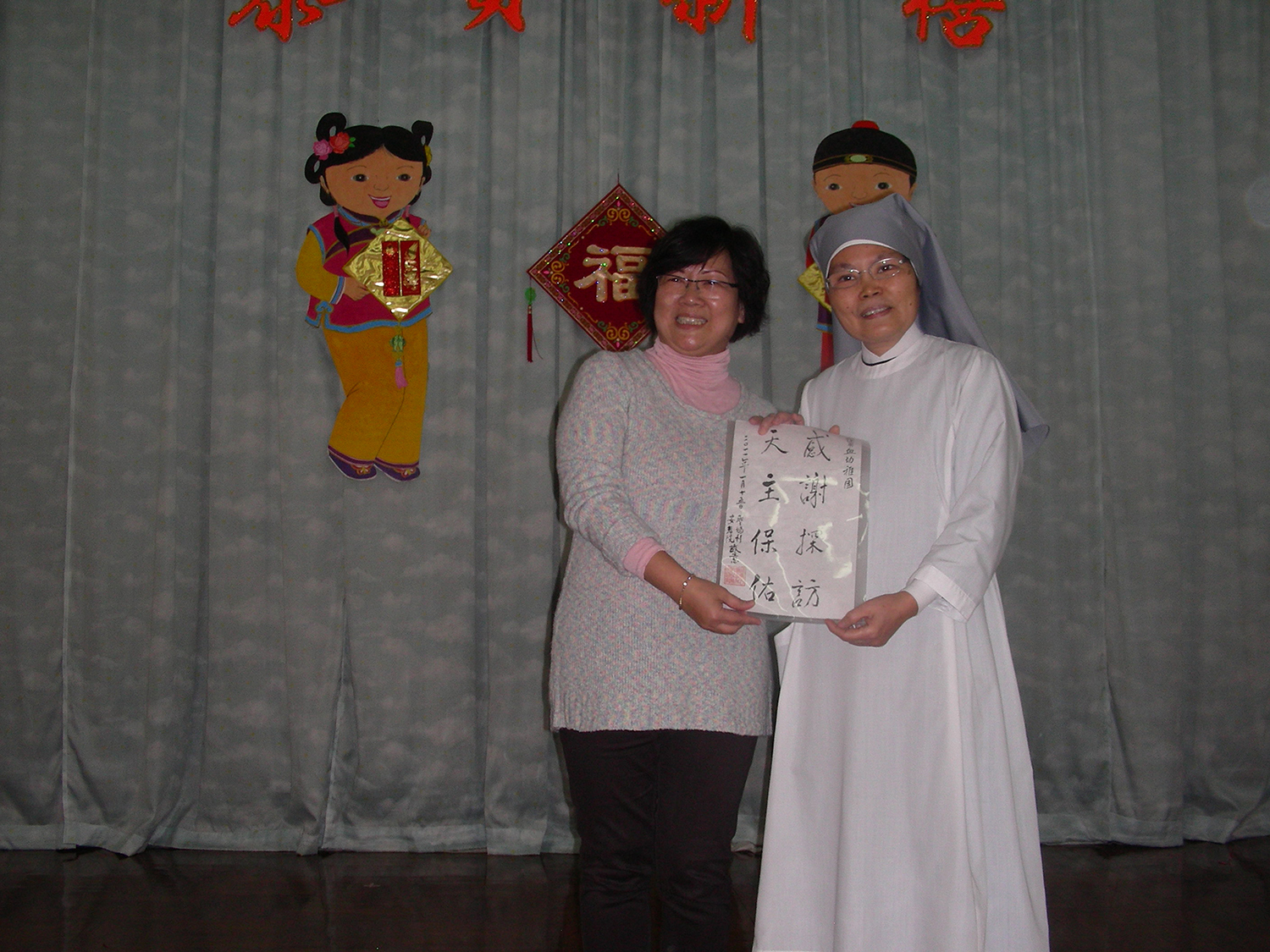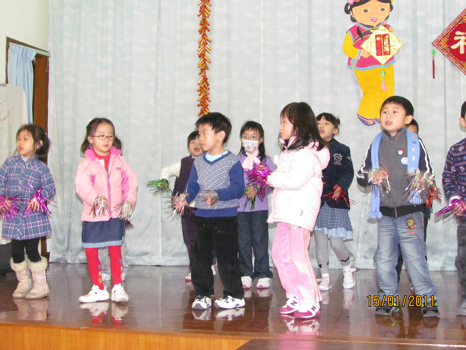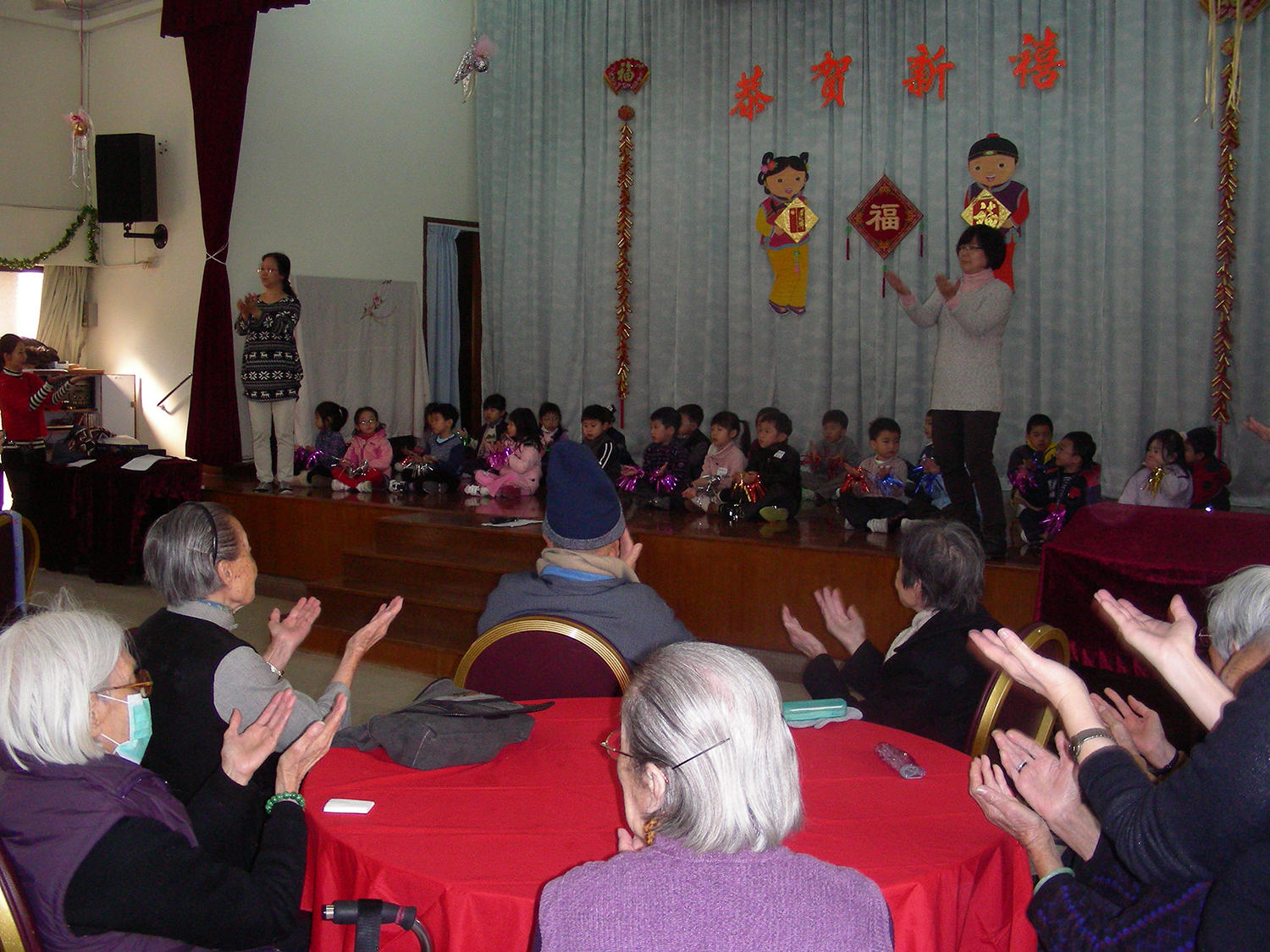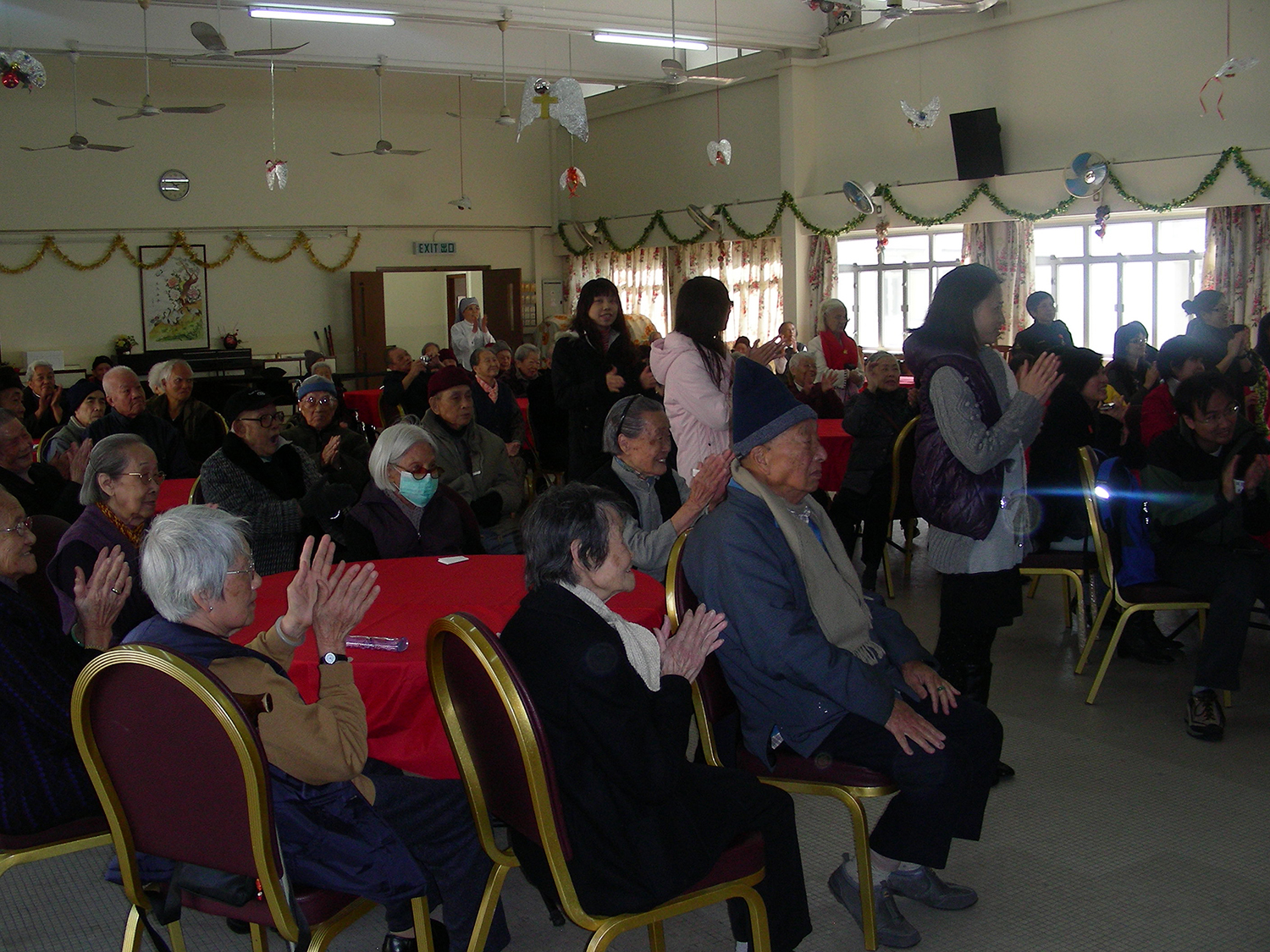 2011年1月15日(星期六)上午,家教會與本園宗教組合辦「家校同心表關懷~親子探訪護老院」活動。我們在10時到達黃竹坑聖瑪利安老院。大家安坐在禮堂,由司儀馮淑媛老師及家教會委員王瑞紅女士帶領小朋友頌唱-讚美主及耶穌喜愛小孩像愛我等歌曲來感謝天主。熱身表演後,孩子們蹦蹦跳地表演活力健康操,盡顯個人活力。再透過「敲咚咚」音樂替公公婆婆們搥骨,場面十分溫馨。葉主任和余麗芳老師也帶動全場齊做「十巧操」運動。接著由關歆老師帶領家長及全體老師一起向公公婆婆玩「金兔遊戲」,遊戲過後家長和小朋友一起送給長者們一份「愛心禮物」,讓公公婆婆感受到我們對他們的關懷。最後由工作人員帶領參觀院舍的設施,大家也懷着愉快的心情結束這天的活動。