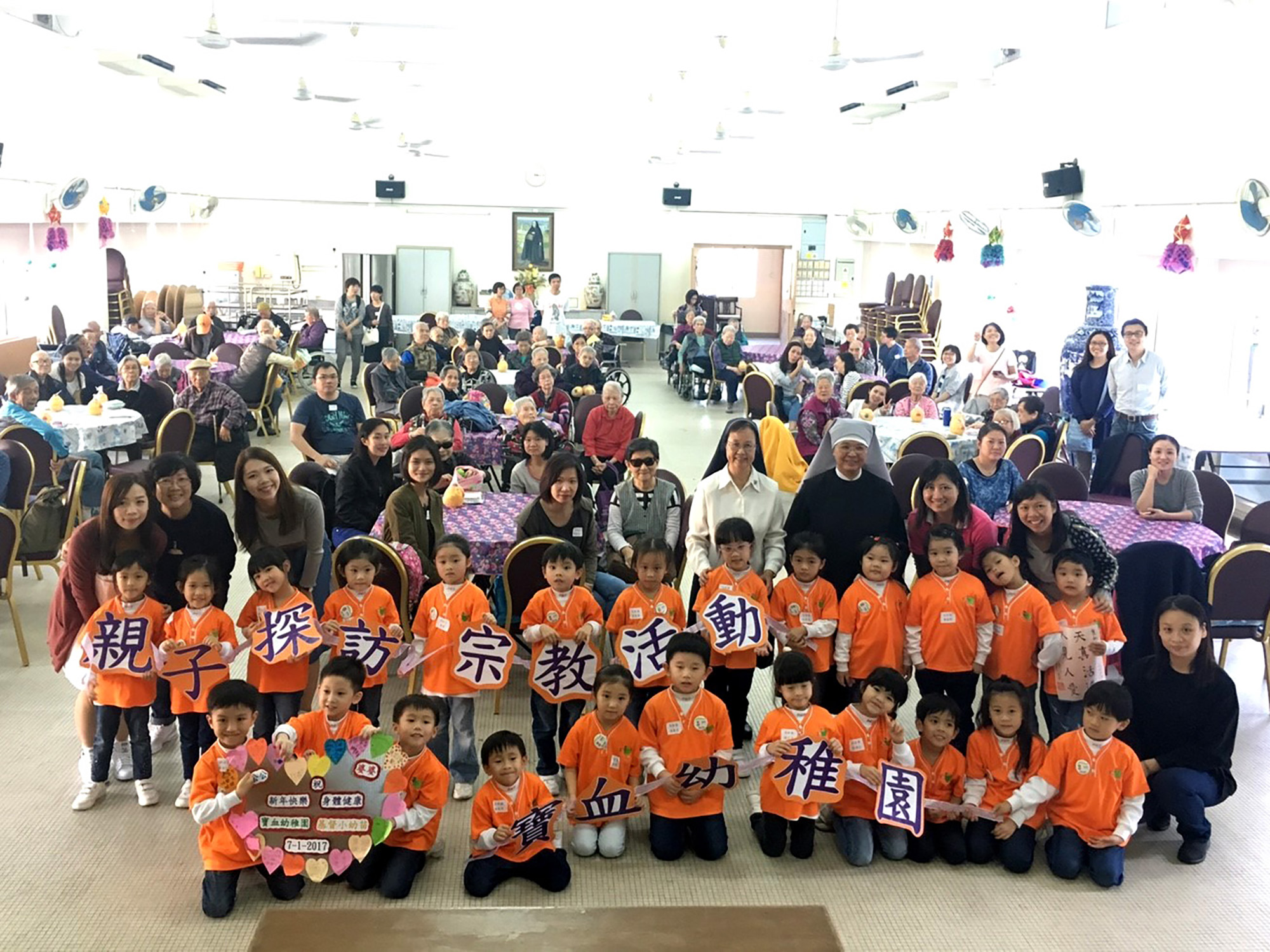 「基督小幼苗」於一月七日,前往聖瑪利安老院作親子探訪護老院活動,藉此活動讓小朋友效法 敬主愛人、事事關心、熱心服務、常懷感恩」的基督精神。當天,「基督小幼苗」表演福音劇---「撒種的比喻」,更為長者唱出「基督小幼苗」隊歌,然後彭淑貞主任帶領大家做「十巧操」,小幼苗並透過「敲咚咚」音樂為公公婆婆按摩,場面十分溫馨。最後,他們為長者送上心意卡和禮物,院舍一位九十三歲公公更親自手書的一幅書法作品,上面寫上「天真活潑,人見人愛」送給我們。安老院的義工帶領我們參觀工藝室,發現公公婆婆的手工藝非常精湛,有新年吊飾、絲襪花、唸珠等等。最後,我們進入聖堂,為心中意願向天父祈求,大家過了一個愉快又有意義的下午。