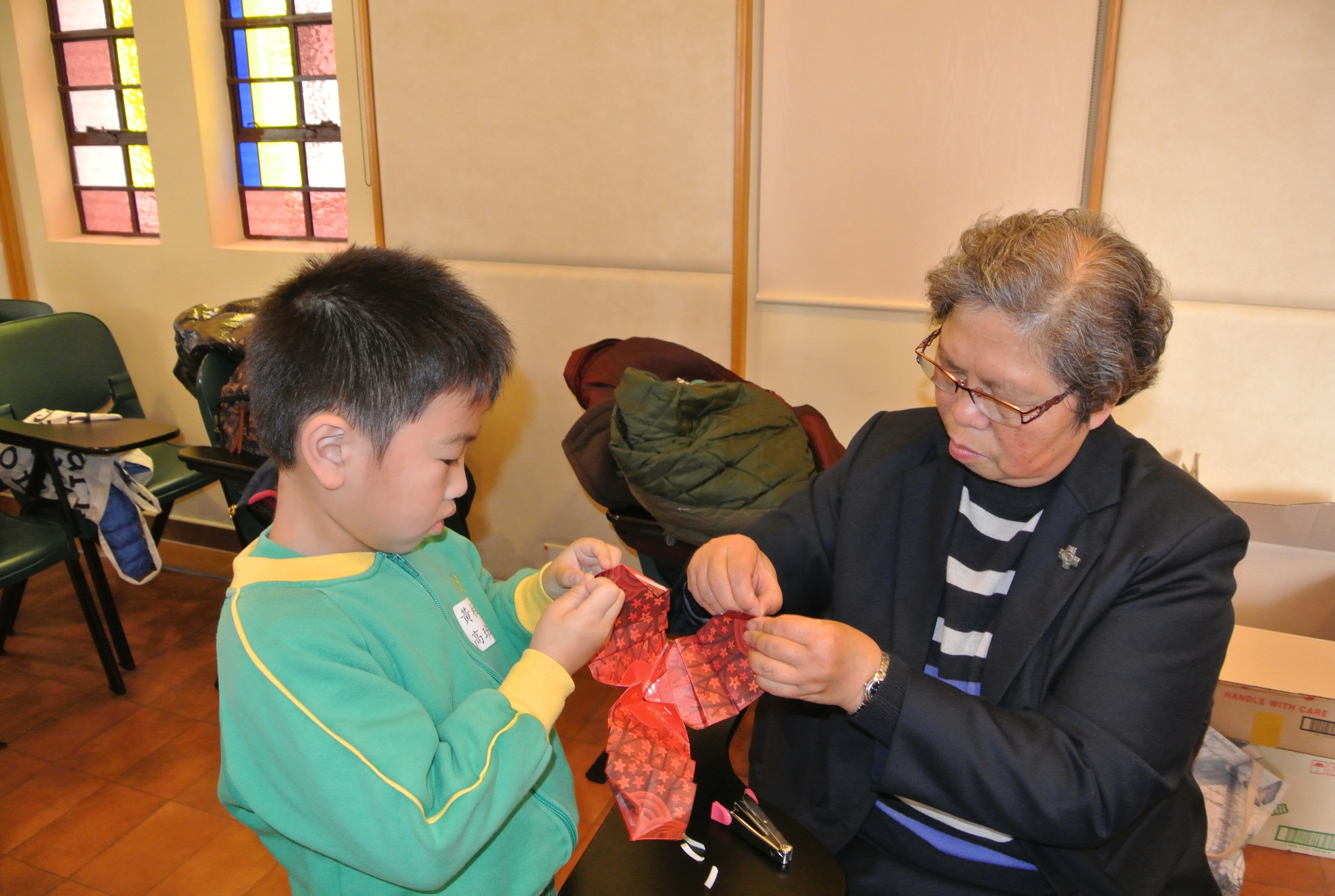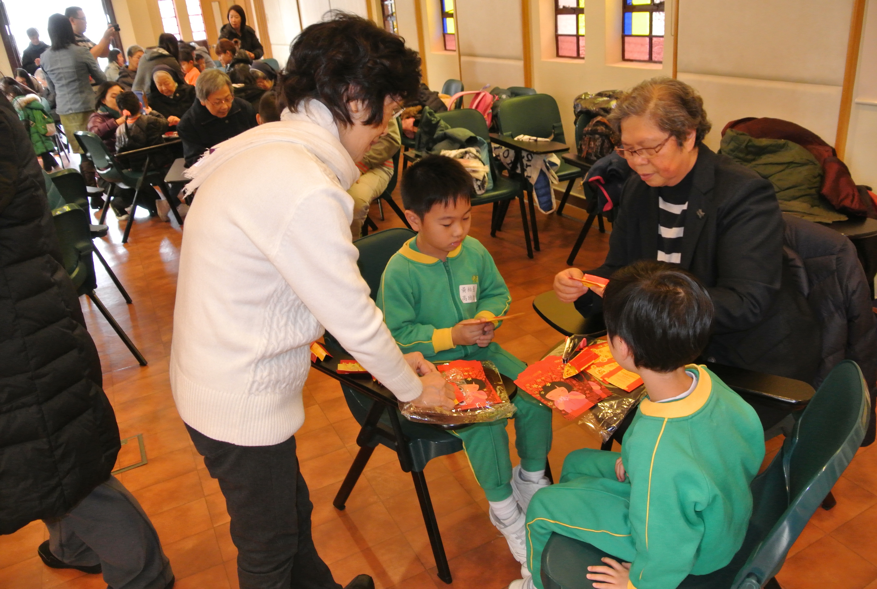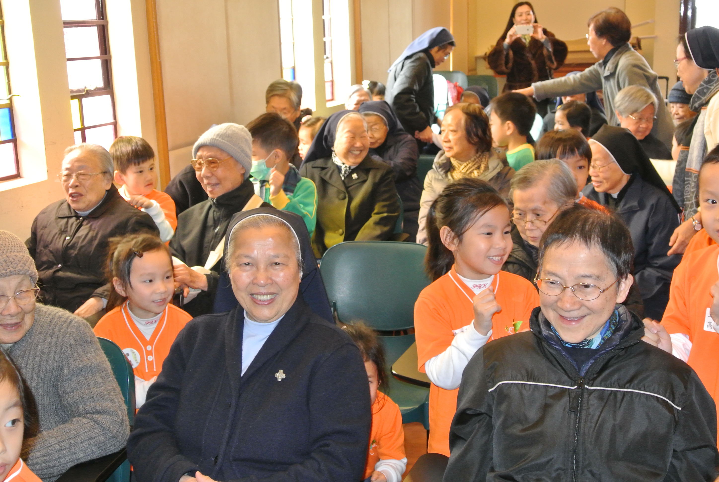 2015年2月7日(六),家教會與本園基督小幼苗合辦「家校同心表關懷~親子探訪寶血會長者修女」的活動。我們上午10時到達粉嶺寶血會。由司儀彭麗儀老師及家教會主席林玉娟女士引領小朋友頌唱: 「基督小幼苗隊歌及 耶穌喜愛小孩像愛我」來感謝天主。熱身表演後,為了表示敬愛長者修女,小朋友唱「敲咚咚」並隨著音樂替公公婆婆們搥骨,場面十分溫馨。葉主任也帶動全場齊做「十巧操」。新年將至,我們與長者修女一起製作一條金魚作賀年吊飾,你看! 大家很投入地工作。最後家長和孩子們齊到教堂做祈禱,感謝天主賜與長者修女和我們的「愛」。