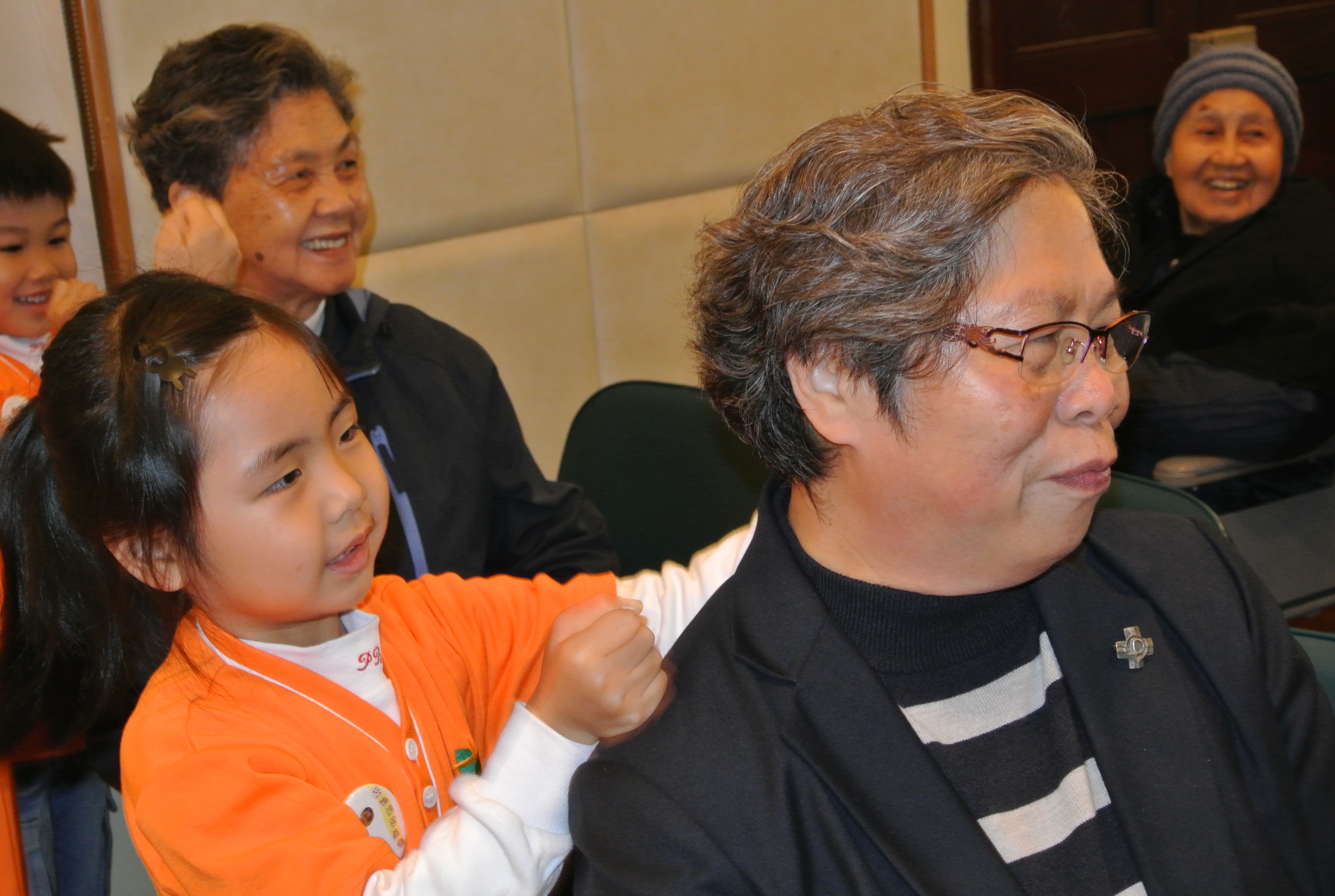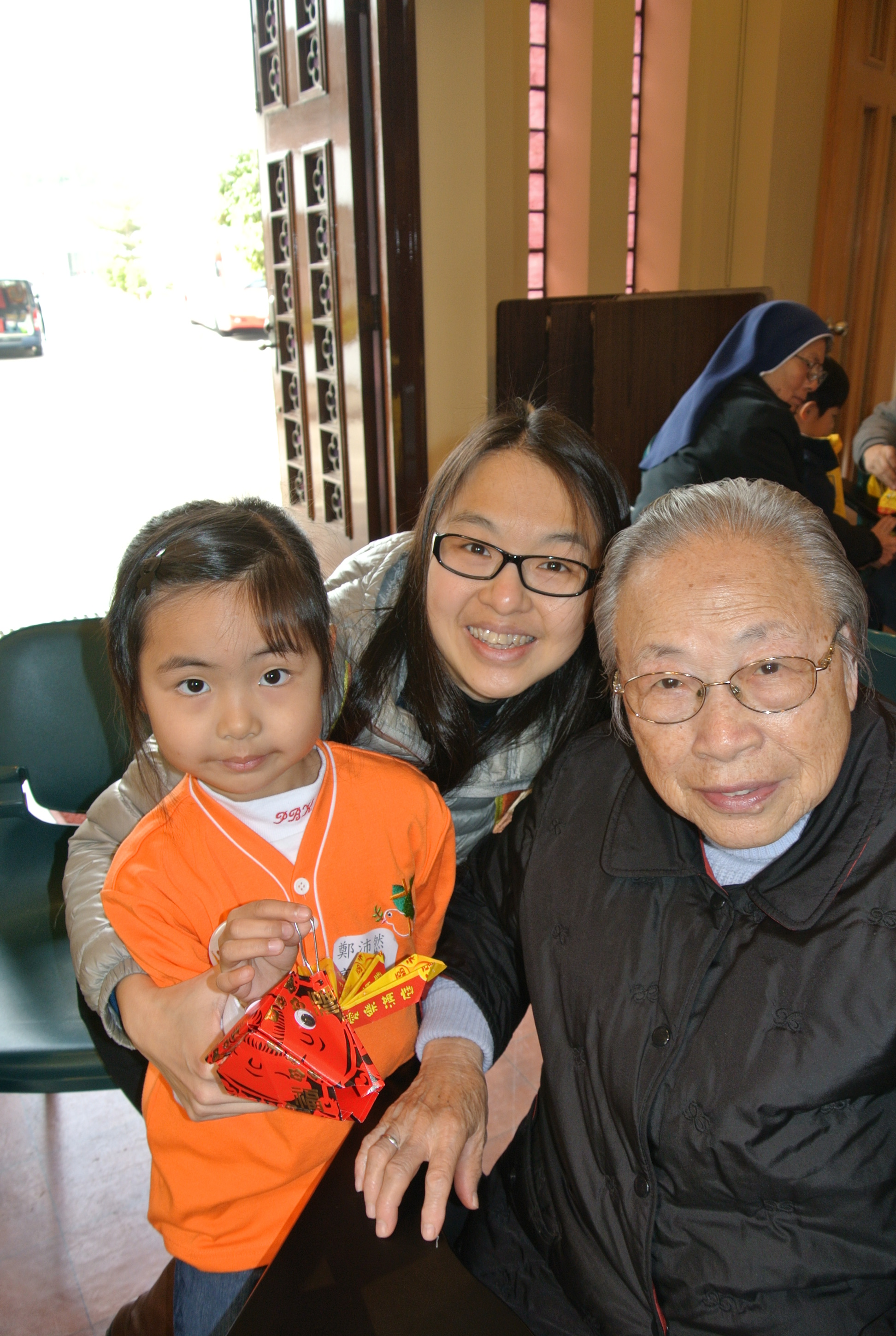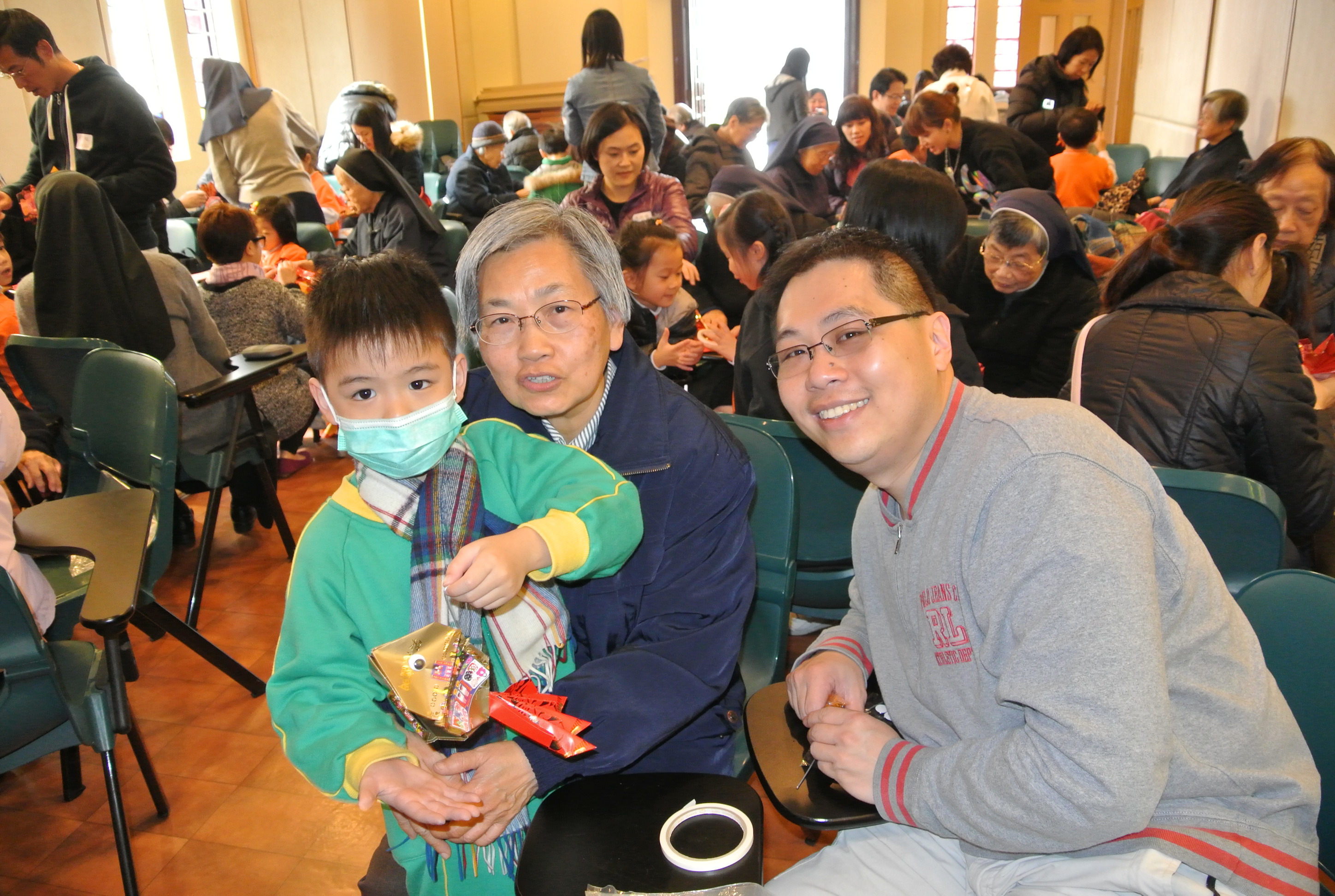 2015年2月7日(六),家教會與本園基督小幼苗合辦「家校同心表關懷~親子探訪寶血會長者修女」的活動。我們上午10時到達粉嶺寶血會。由司儀彭麗儀老師及家教會主席林玉娟女士引領小朋友頌唱: 「基督小幼苗隊歌及 耶穌喜愛小孩像愛我」來感謝天主。熱身表演後,為了表示敬愛長者修女,小朋友唱「敲咚咚」並隨著音樂替公公婆婆們搥骨,場面十分溫馨。葉主任也帶動全場齊做「十巧操」。新年將至,我們與長者修女一起製作一條金魚作賀年吊飾,你看! 大家很投入地工作。最後家長和孩子們齊到教堂做祈禱,感謝天主賜與長者修女和我們的「愛」。