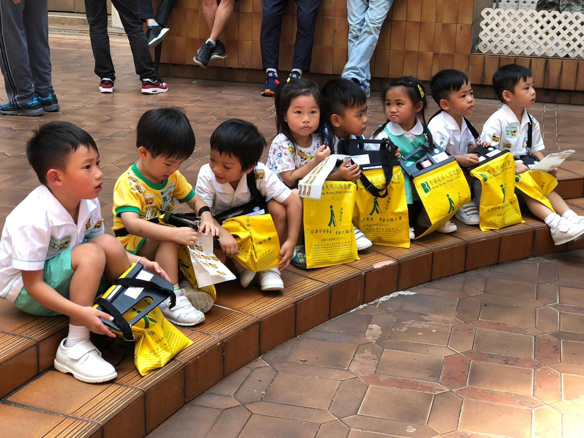 在2019年6月15日(星期六)本園獲 “香港失明人協進會”邀請親子賣旗籌款活動。當天271位幼兒與家長一起分別在港島區進行賣旗活動。幼兒手持貼紙及旗袋,主動地向途人募捐。是日籌募所得之款項將會為視障人士及其家人提供的支援服務、全面的學習及就業支援、資訊科技的發展和推廣,以及公眾教育等工作來實現理想。