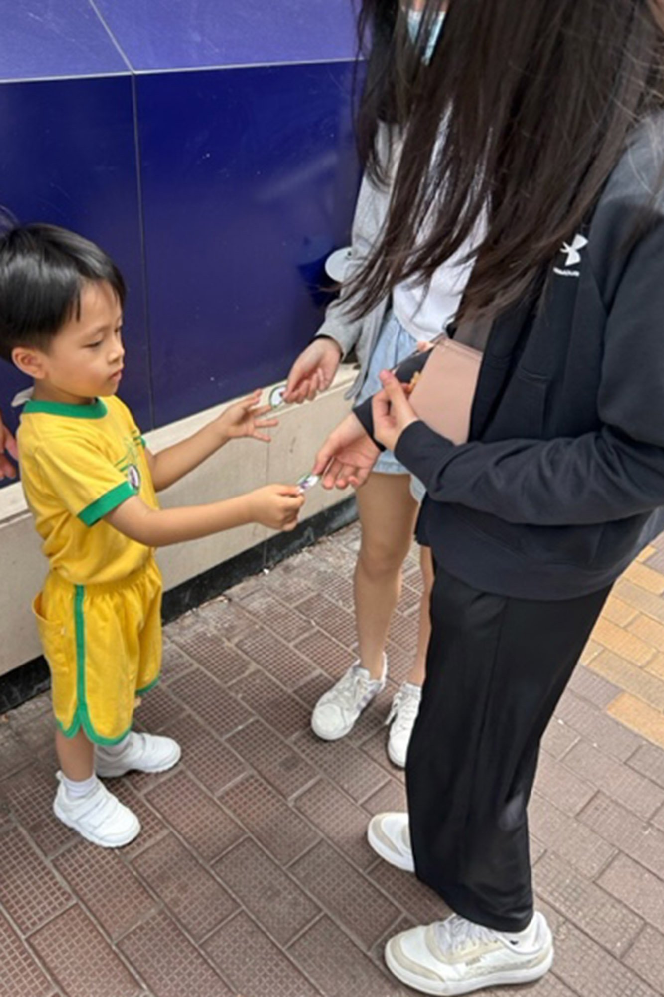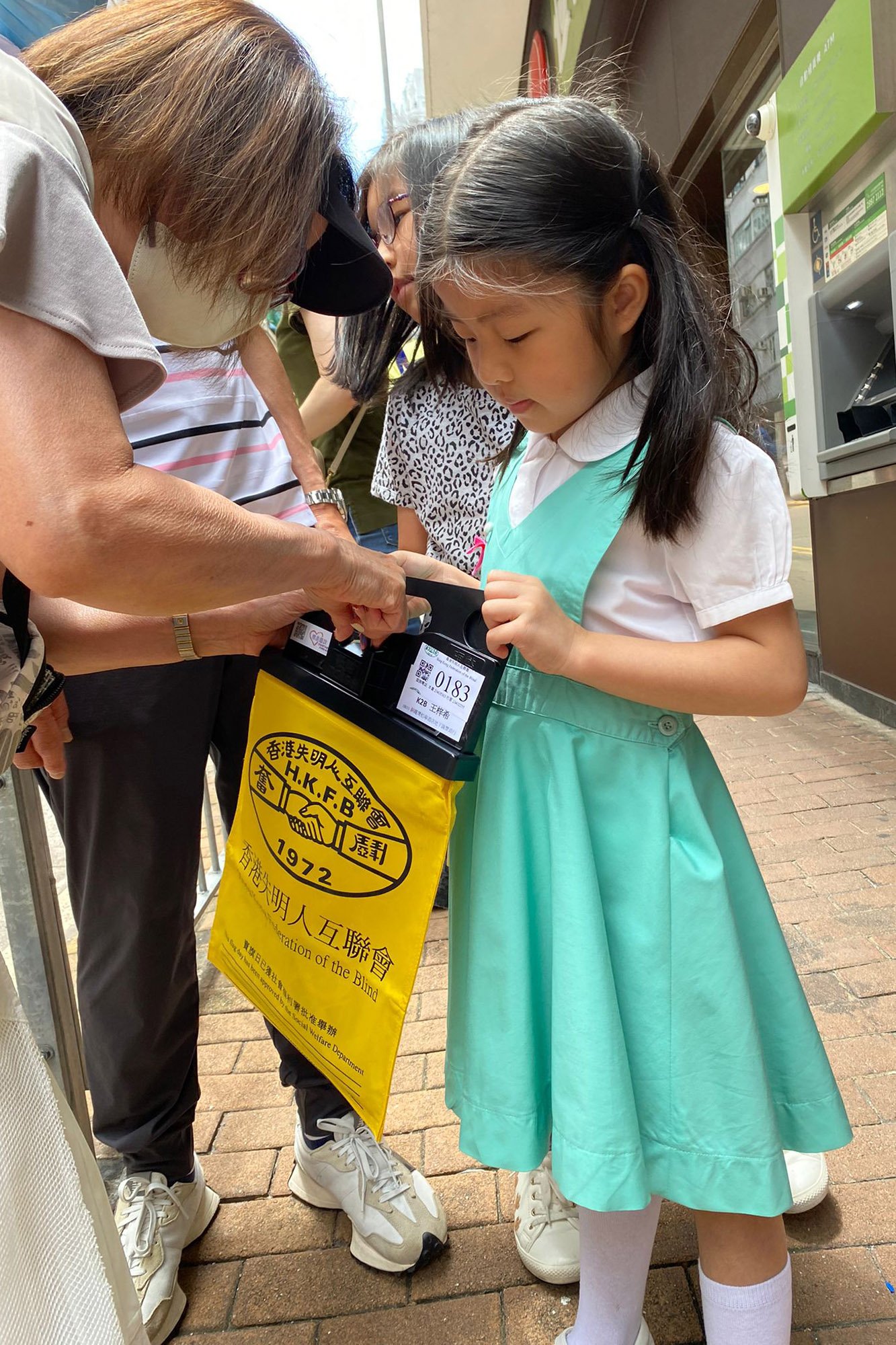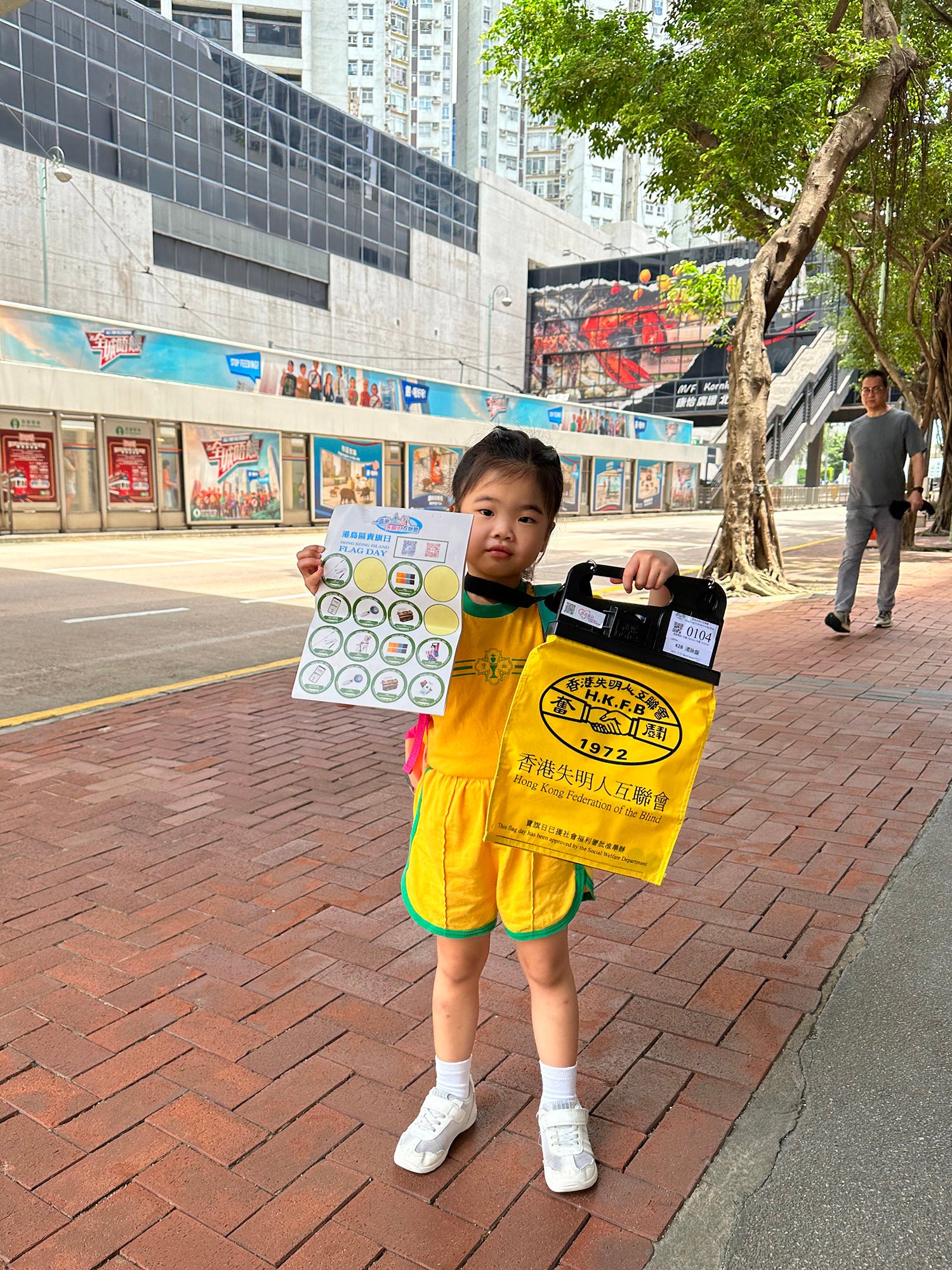 2024年5月11日(星期六)本園學生參與香港失明人互聯會賣旗日,為失明人士及其家人提供多方位的支援及多元化的服務。是次賣旗目的讓失明人士能夠「發展潛能,突破黑暗,融入社會,積極人生」。當天幼兒及家長身體力行,分別在各地區進行賣旗活動,積極向途人募捐,盡顯無限愛心。幼兒透過親身體驗籌款的經驗,從而學習助人為快樂之本的意義。