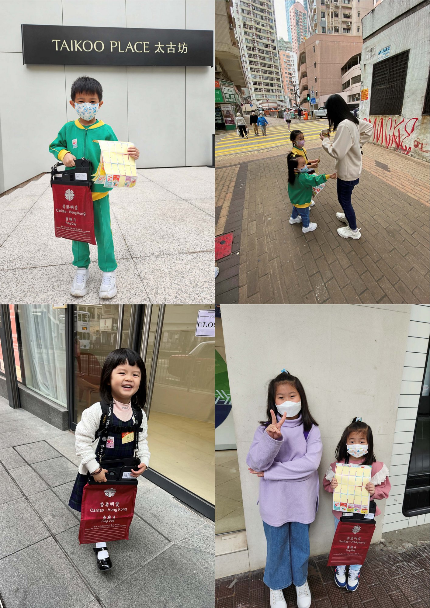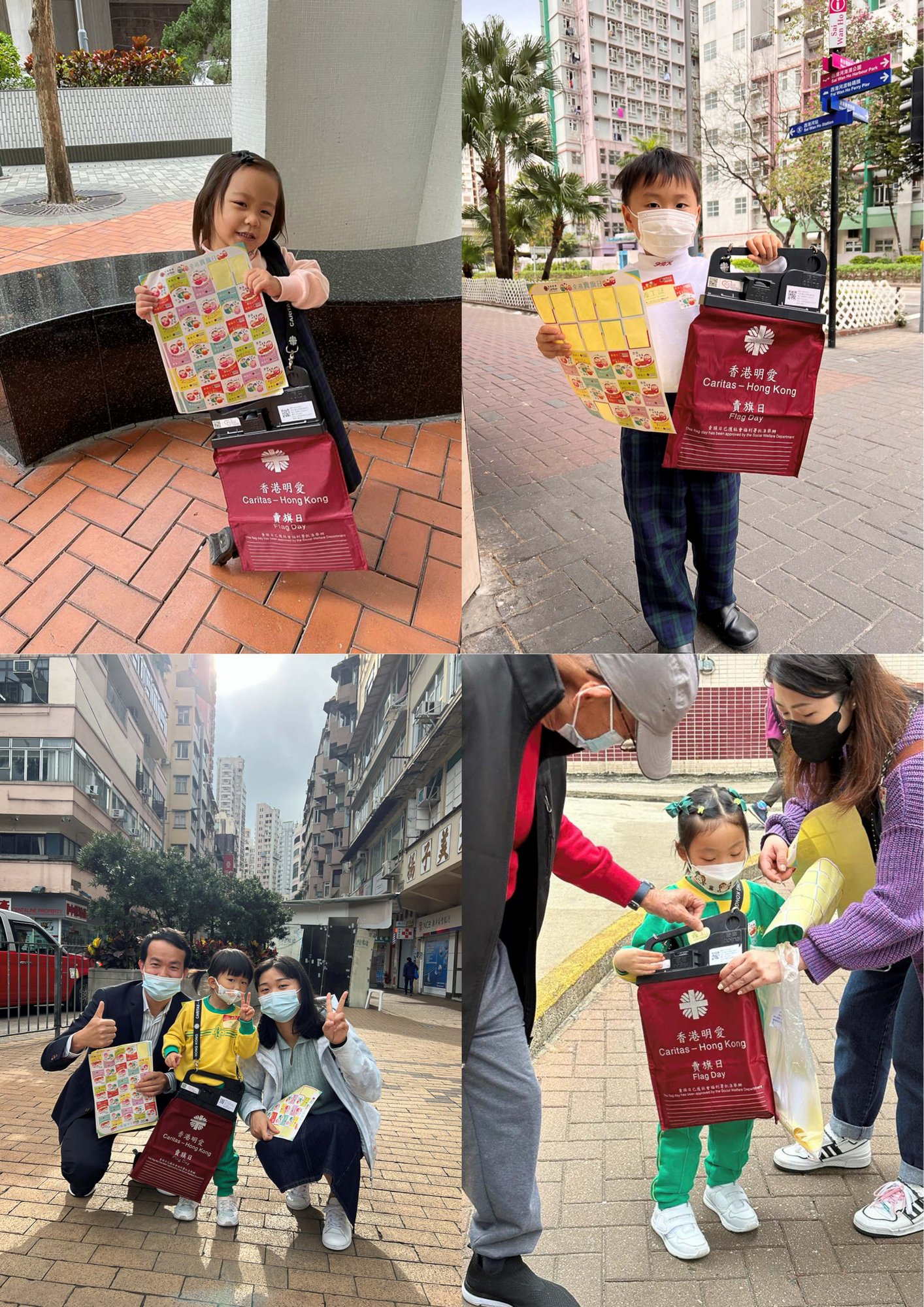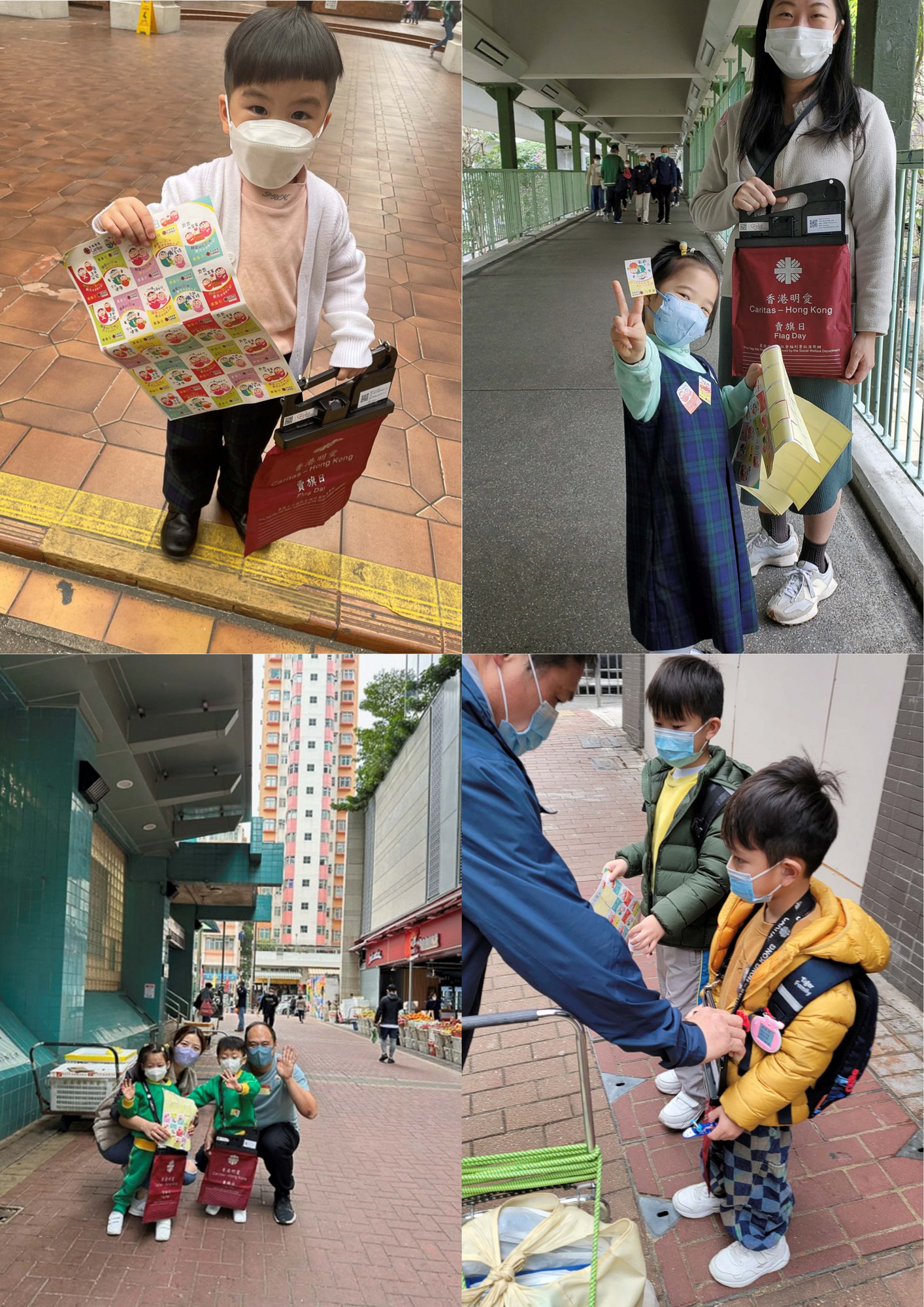 2023年2月18日(星期六)本園學生參與明愛賣旗日,為香港明愛的護老者、低收入家庭學生及有特殊需要青年籌款。當天幼兒及家長慷慨地付出時間,分別在各地區進行賣旗活動,積極向途人募捐,共同分享愛心,藉著是次籌款活動可讓幼兒親身體驗「慷慨解囊」及「助人為快樂之本」的意義。