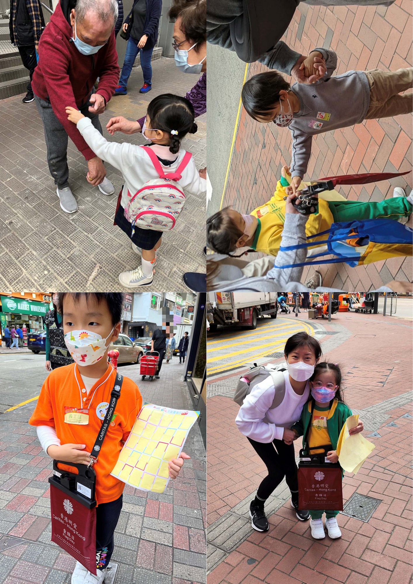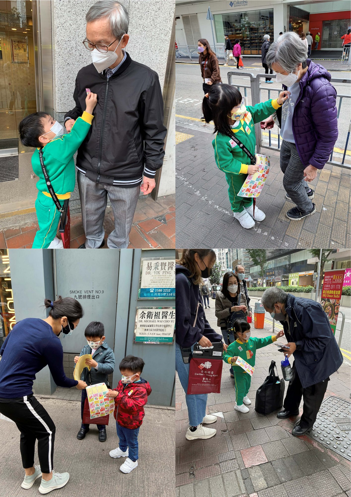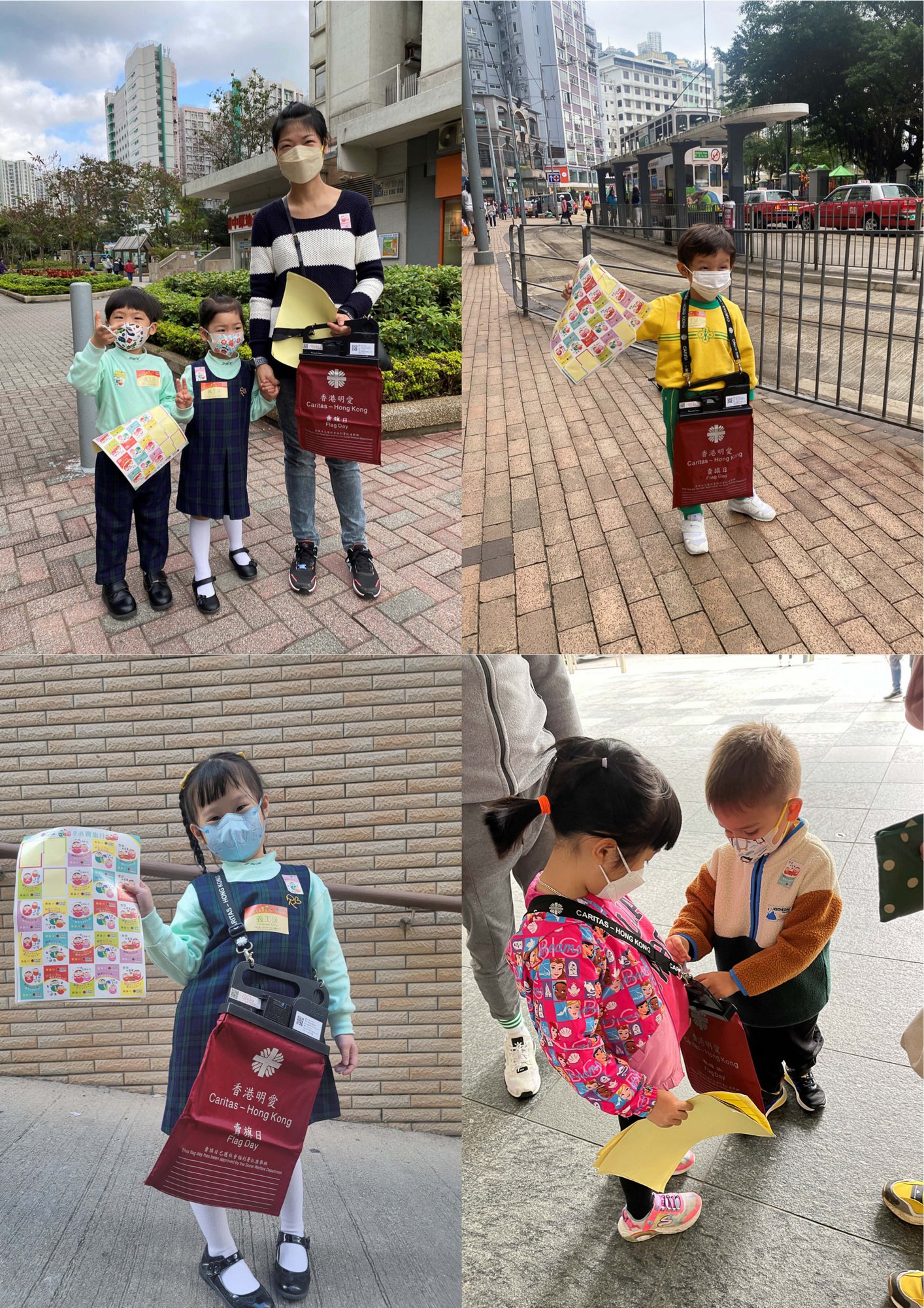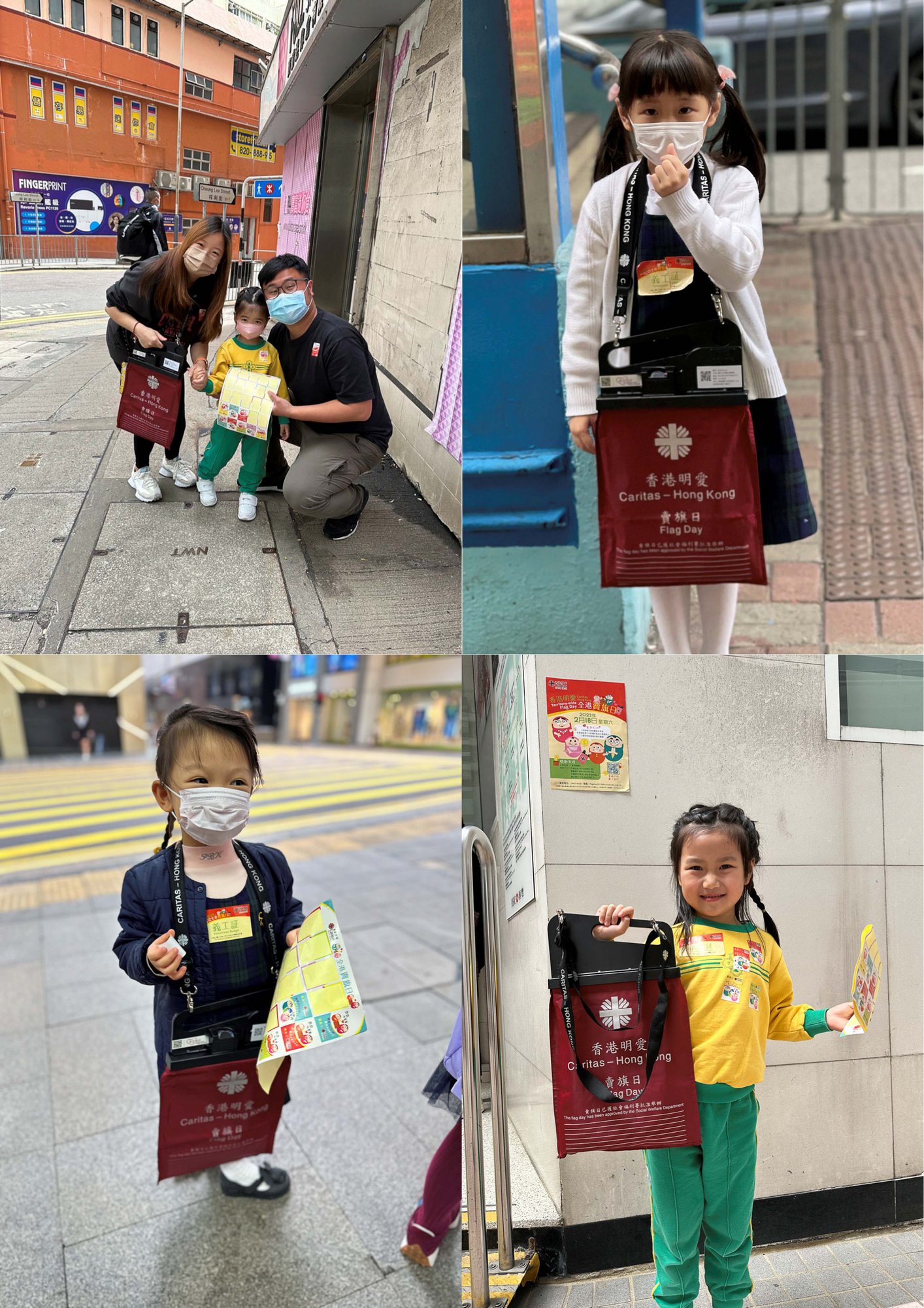 2023年2月18日(星期六)本園學生參與明愛賣旗日,為香港明愛的護老者、低收入家庭學生及有特殊需要青年籌款。當天幼兒及家長慷慨地付出時間,分別在各地區進行賣旗活動,積極向途人募捐,共同分享愛心,藉著是次籌款活動可讓幼兒親身體驗「慷慨解囊」及「助人為快樂之本」的意義。