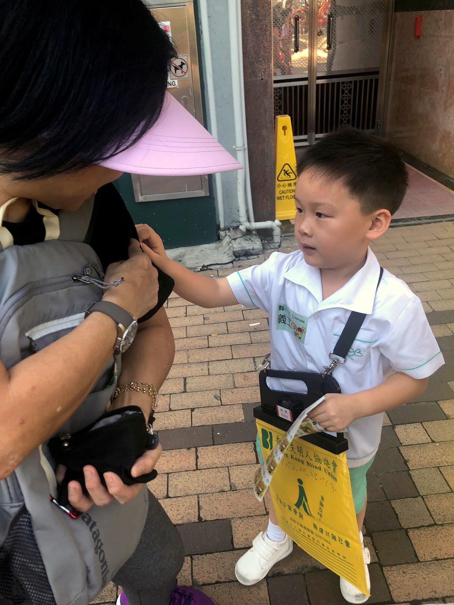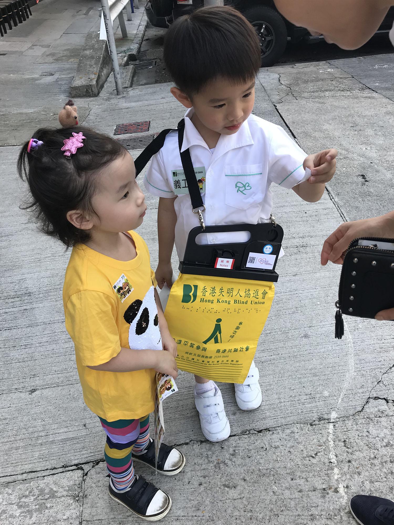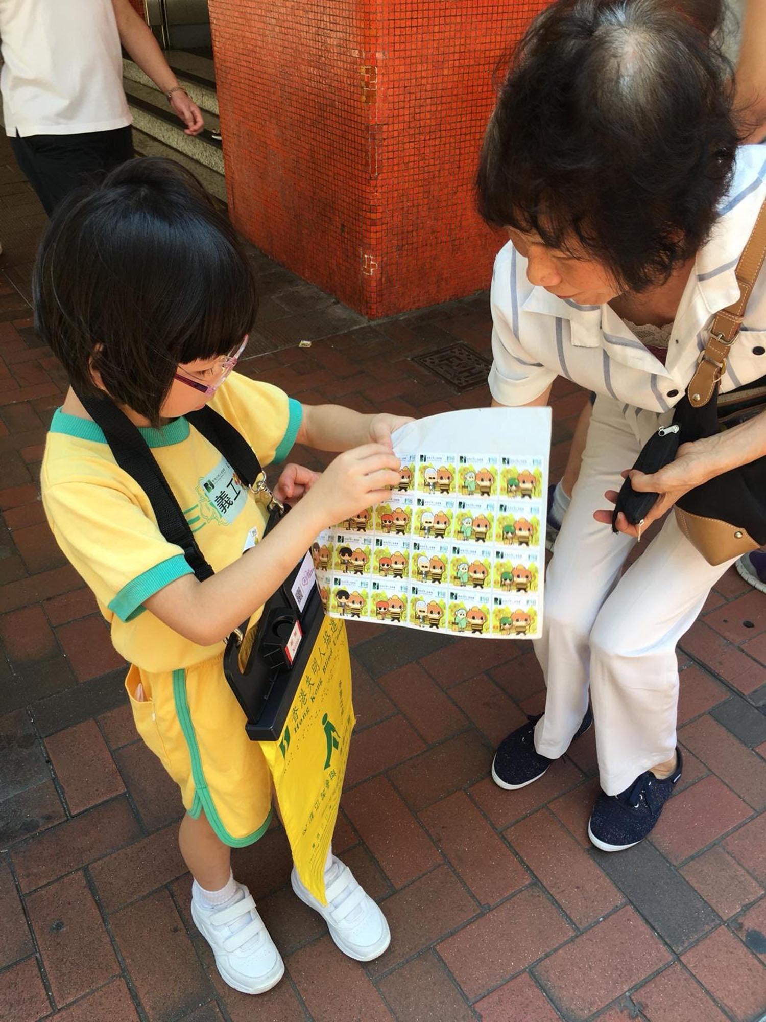 在2019年6月15日(星期六)本園獲 “香港失明人協進會”邀請親子賣旗籌款活動。當天271位幼兒與家長一起分別在港島區進行賣旗活動。幼兒手持貼紙及旗袋,主動地向途人募捐。是日籌募所得之款項將會為視障人士及其家人提供的支援服務、全面的學習及就業支援、資訊科技的發展和推廣,以及公眾教育等工作來實現理想。