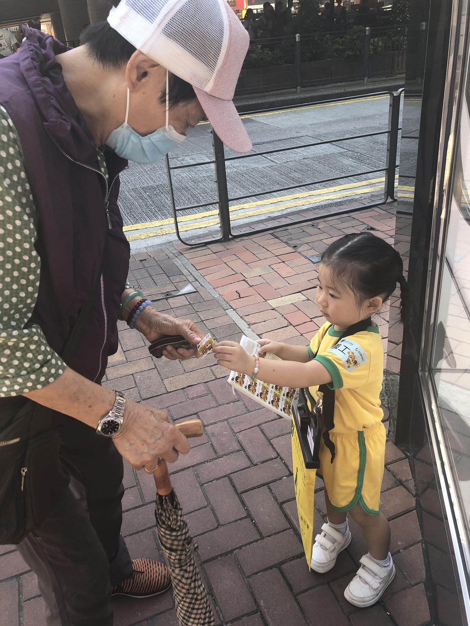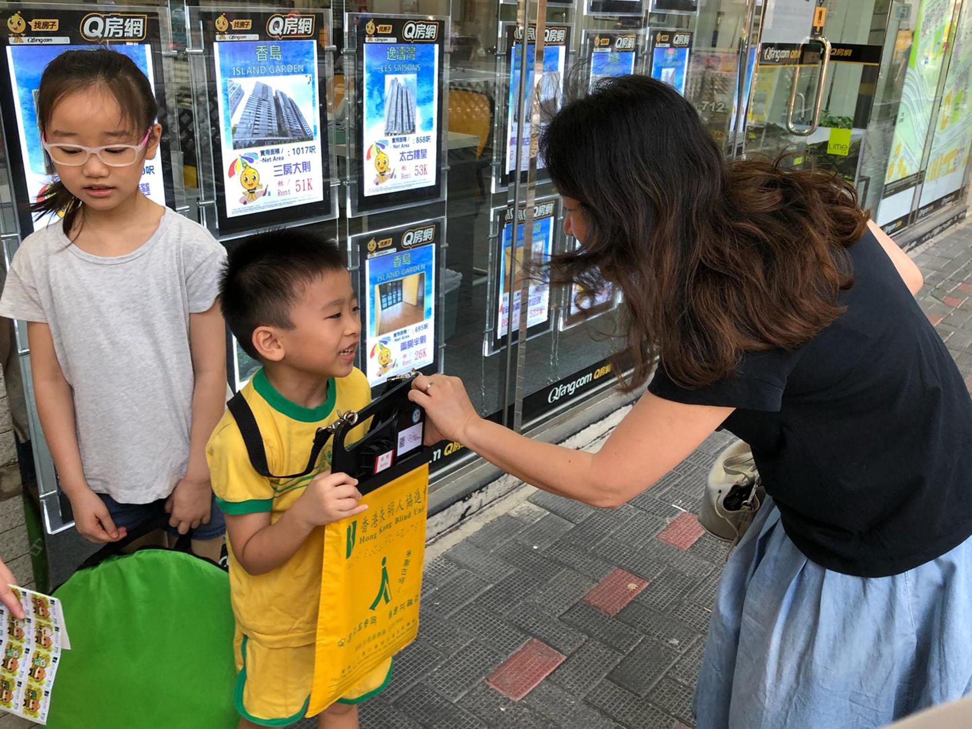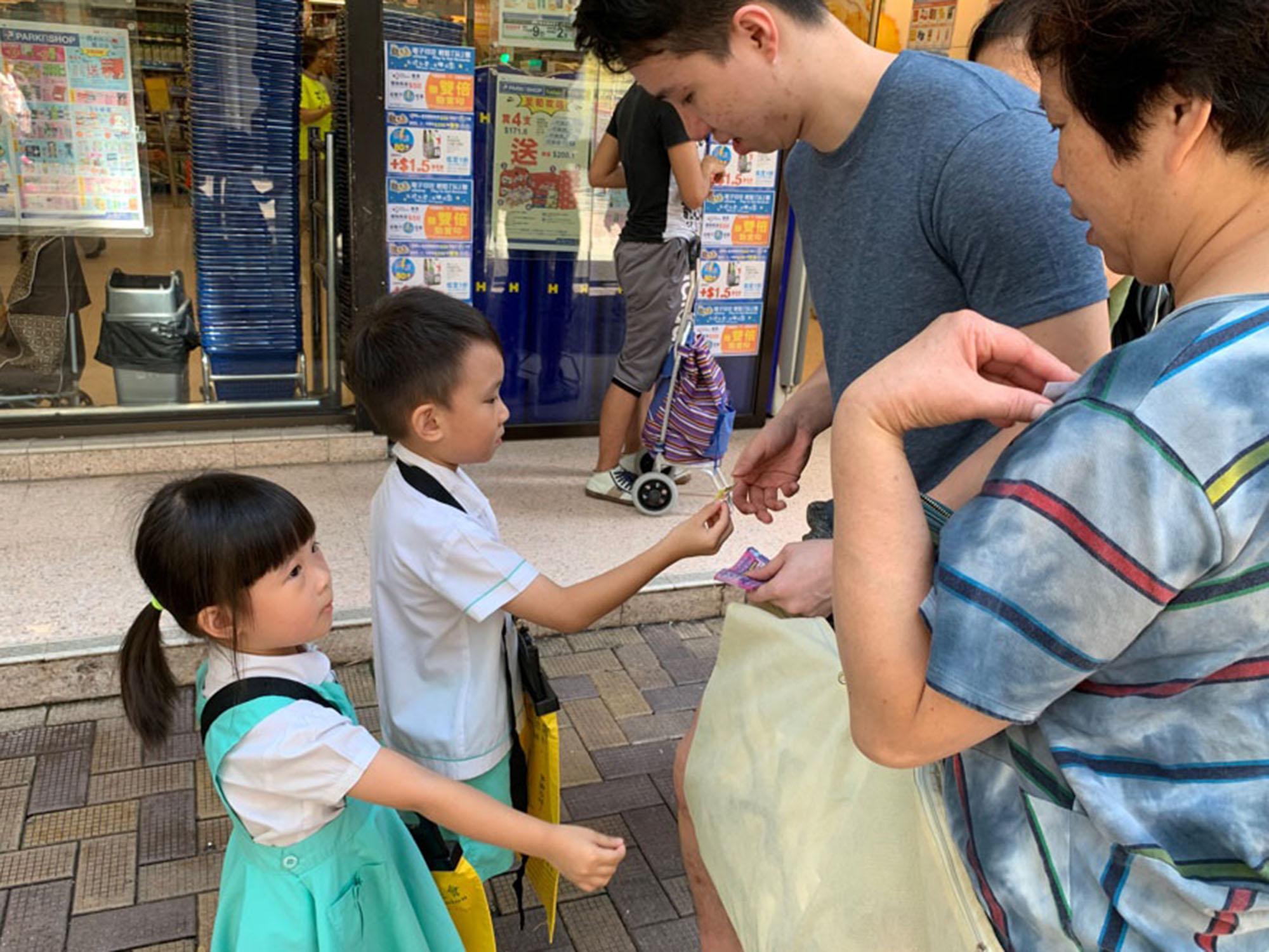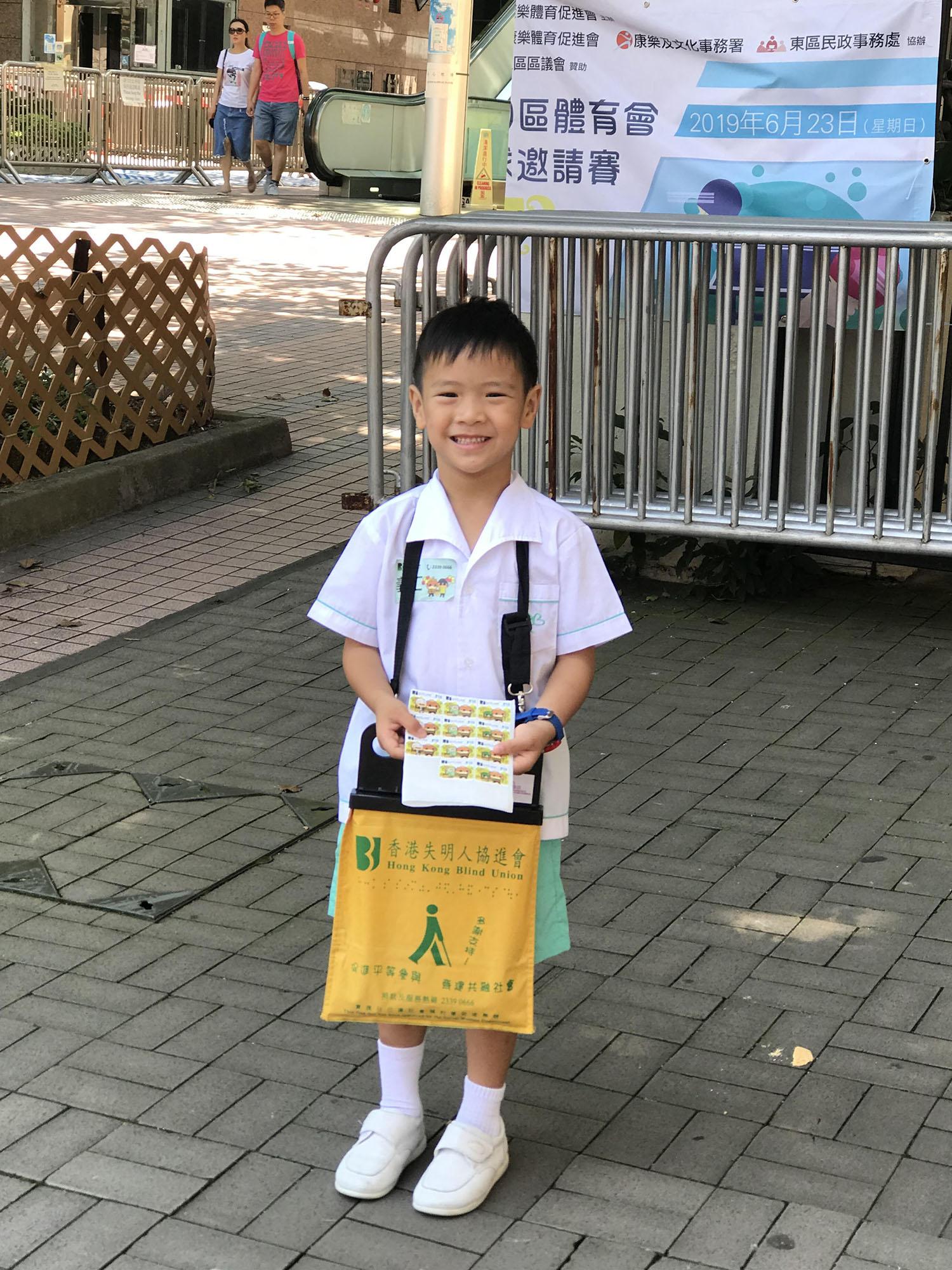 在2019年6月15日(星期六)本園獲 “香港失明人協進會”邀請親子賣旗籌款活動。當天271位幼兒與家長一起分別在港島區進行賣旗活動。幼兒手持貼紙及旗袋,主動地向途人募捐。是日籌募所得之款項將會為視障人士及其家人提供的支援服務、全面的學習及就業支援、資訊科技的發展和推廣,以及公眾教育等工作來實現理想。