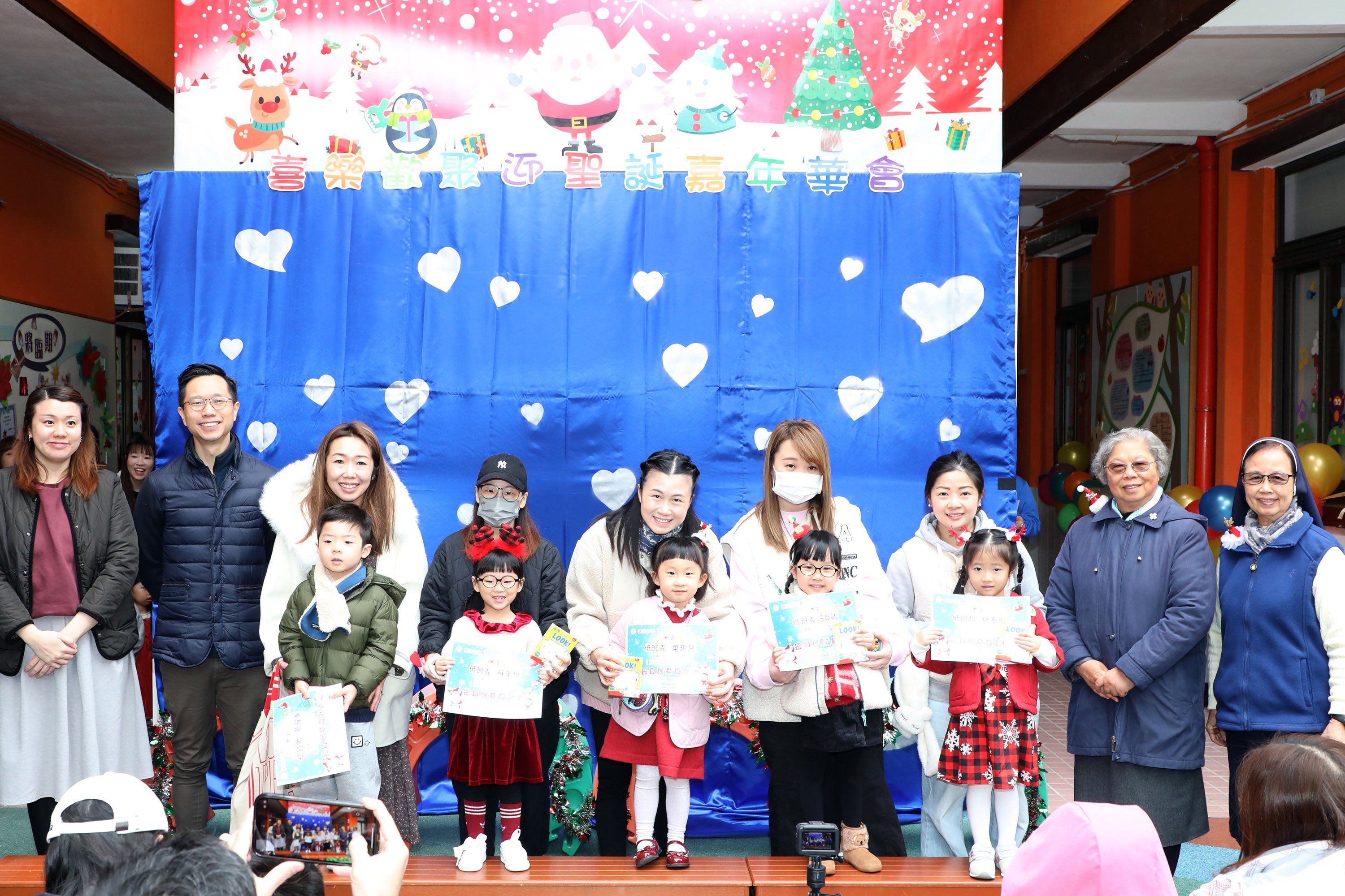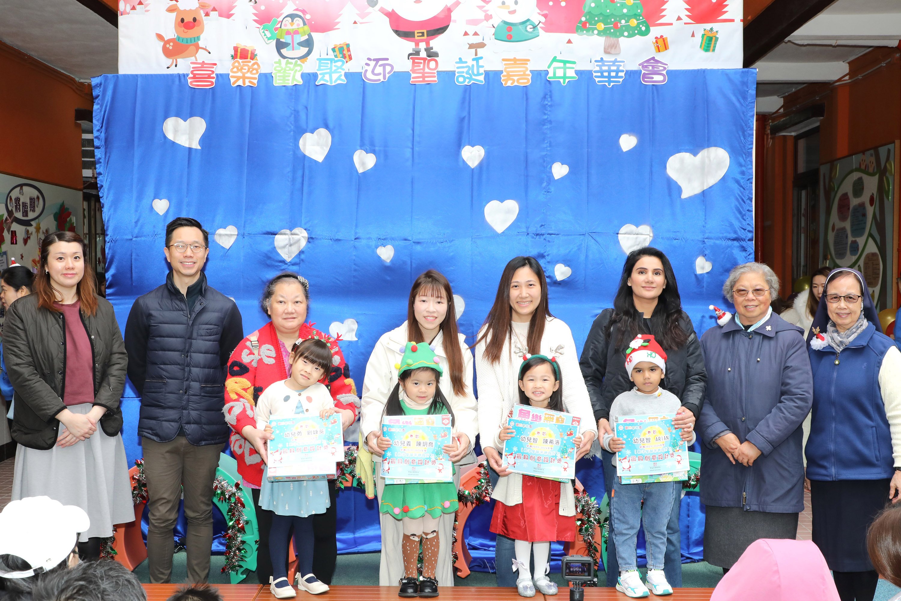 本園與家長教師會合辦「親子創作~聖誕吊飾設計」活動,經過甘修女,馬副校長、主任、全體老師及「家長教師會」委員共同評選,並在2023年12月20日(星期三)「喜樂歡聚迎聖誕」嘉年華會,由校監區修女、甘修女、家長教師會主席彭澤邦先生及副主席游聯芸女士頒發獎狀及禮物予每級六位「最具創意設計獎」得獎者。家長與幼兒的聖誕吊飾設計精美,除了令整個校園充斥著節日氣氛外,更傳遞著小耶穌誕生的喜樂訊息,希望大家細心欣賞他們的成果!