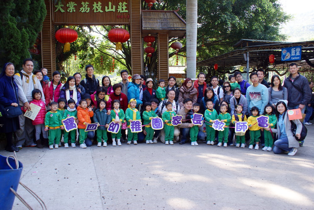 2011年12月3日(星期日),家長教師會舉辦了「開心歡聚家庭樂~大棠荔枝山莊」之親子旅行。蒙天主眷顧,當日天朗氣晴,我們齊集香港灣仔金紫 荊廣場,乘坐旅遊車,1200多人浩浩盪盪地到達元朗「大棠荔枝山莊」。拍過團體照後便開始參觀及享用園裏的設施:有湖心亭餵魚、兒童遊樂場、大型網陣、迷你動物園、果樹教育徑、鱘龍池、觀景台、神秘添福洞、瀑布、楊桃林、富貴池、蔬果展覽室、農具展覽室、蝴蝶標本室、騎馬遊覽、綠田園、踏浪吊橋及仿古抽灌用的水車等。中午,大家圍坐一起品嚐園內的「山莊風味宴」,孩子、家長及老師們吃得津津有味,樂也融融。約3時半,活動結束了,我們才盡興踏上歸途。