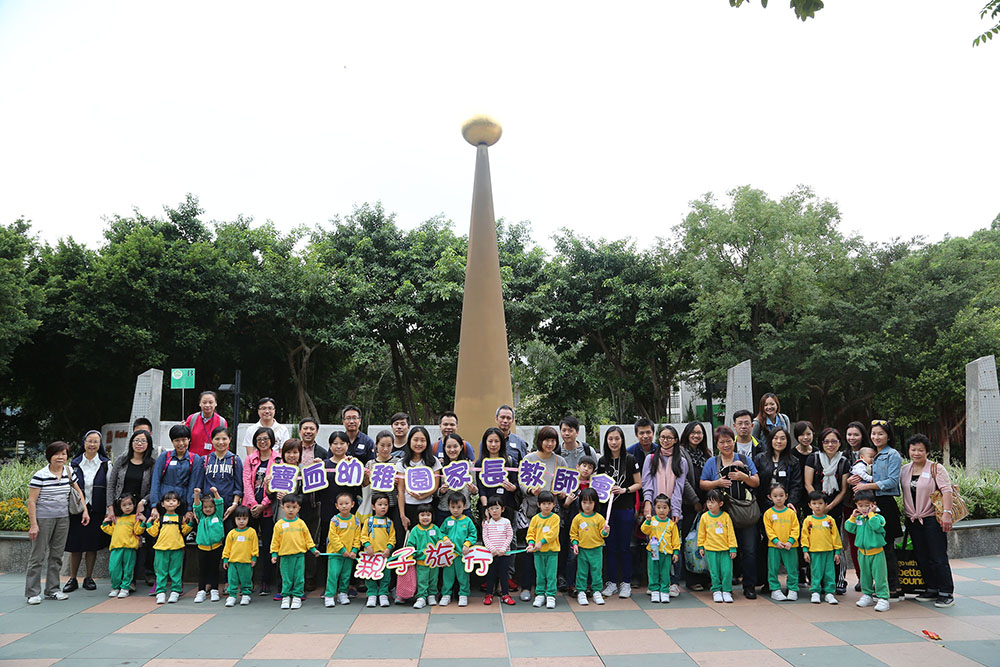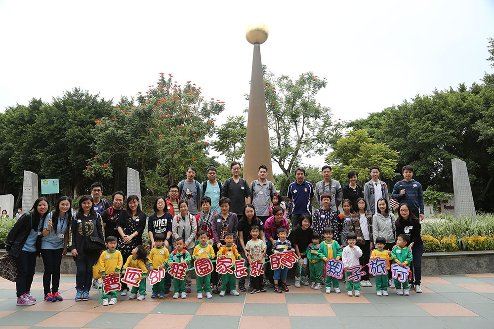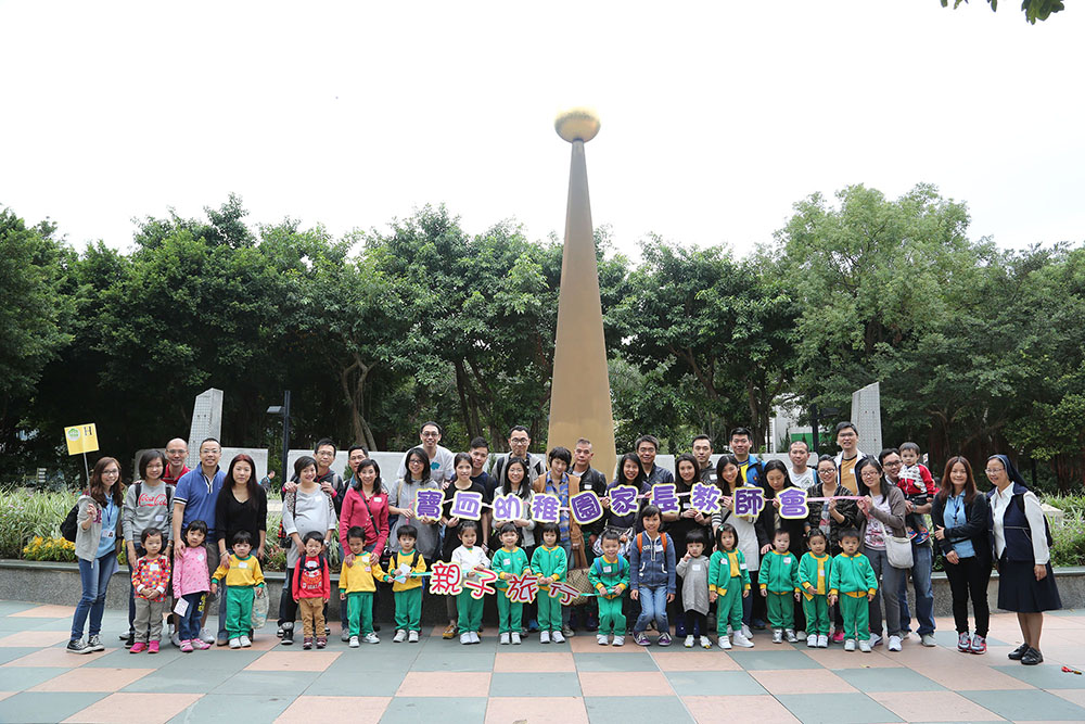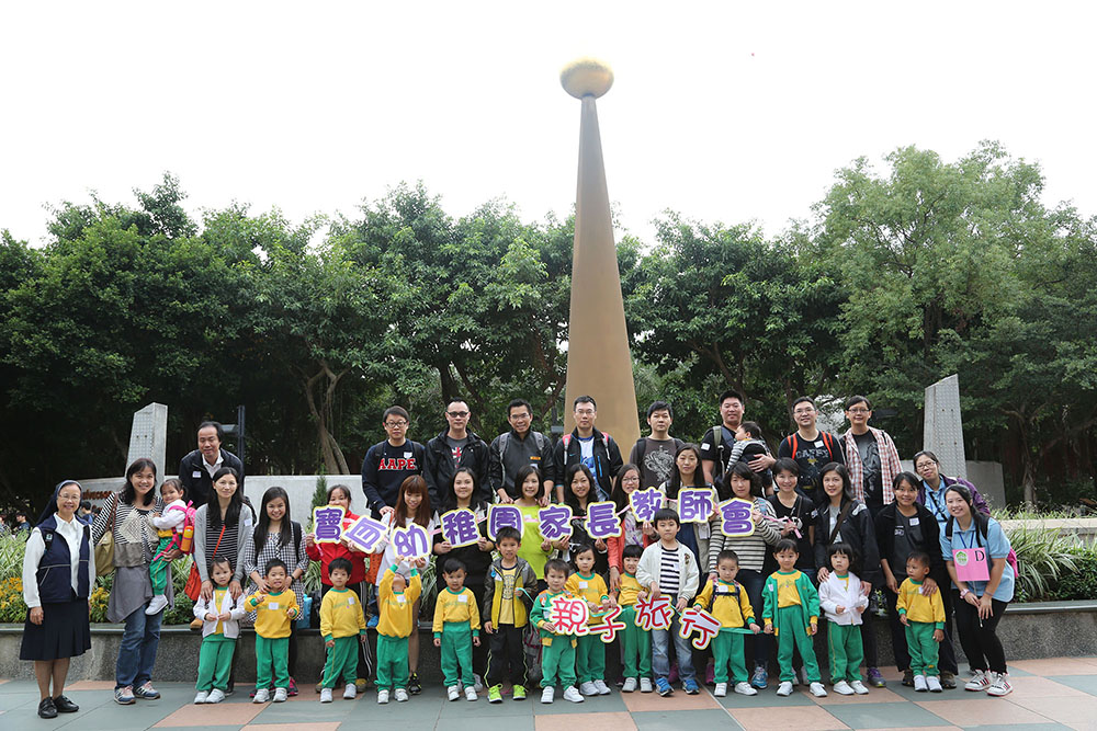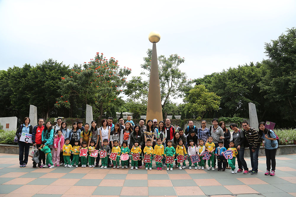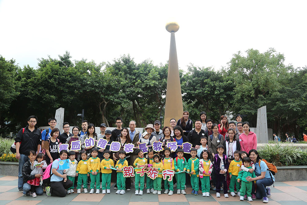 2014年11月29日(星期六) 家長教師會為幼兒班舉辦「親子旅行~大埔海濱公園郊遊樂」。家長們踴躍報名,參加人數達400多人。當日早上我們乘坐9輛旅遊車浩浩盪盪地從灣仔金紫荊廣場出發,到達大埔海濱公園後,先拍攝團體照,然後便開始進行集體親子遊戲,包括匙蛋賽、彩傘及報紙運球;過程中,家長們也很投入活動當中,集體遊戲過後便是自由活動時間,可到參觀不同的景點,包括香港回歸紀念塔、草地滾球場、緩跑徑、昆蟲屋、自然生態花園、西式花園和模型船水池等,某些幼兒亦自備了吹泡泡及放風箏活動。最後在草地上進行野餐。吃過豐富的午餐後便收拾物品回程,這次活動讓大家歡渡了一個既溫馨又愉快的週末。