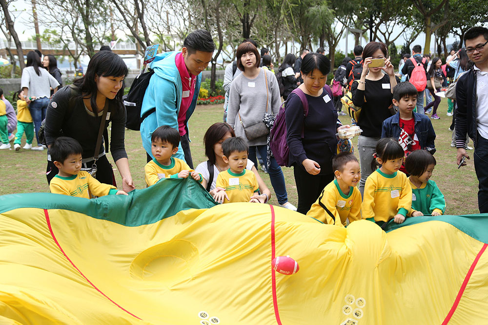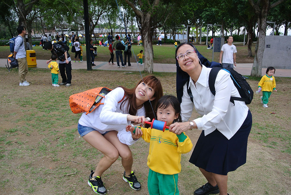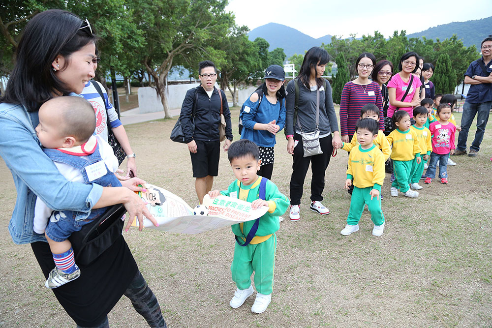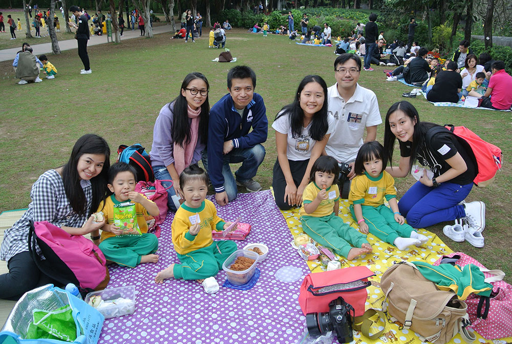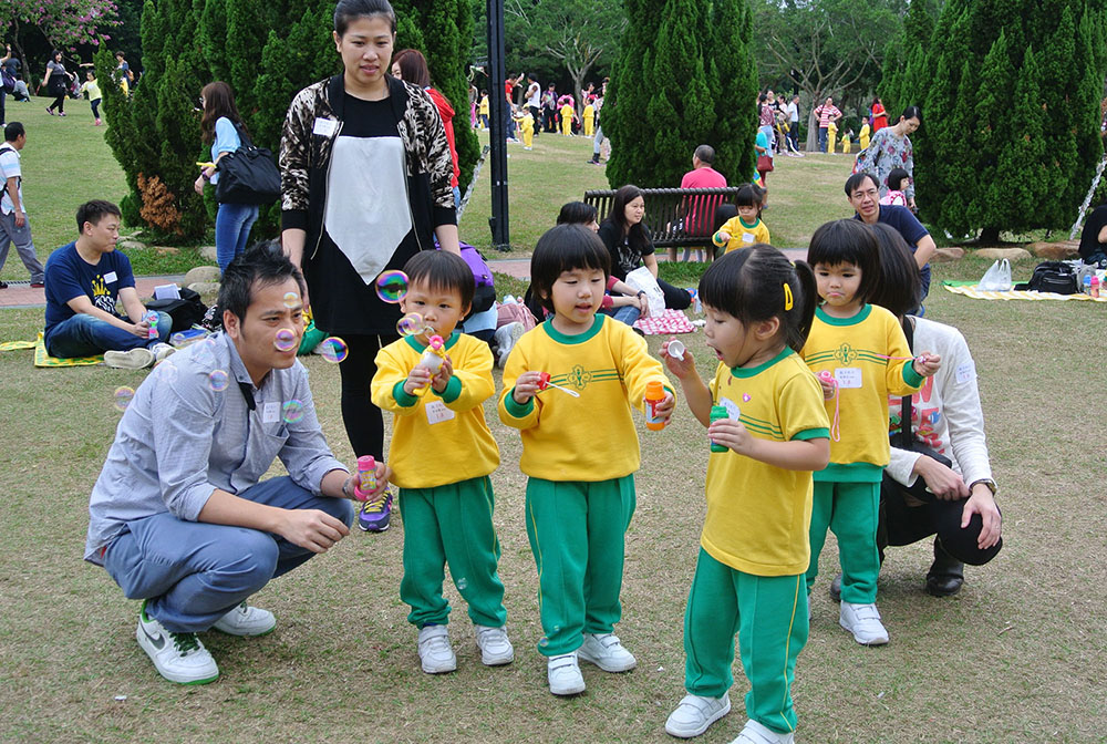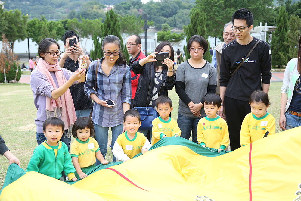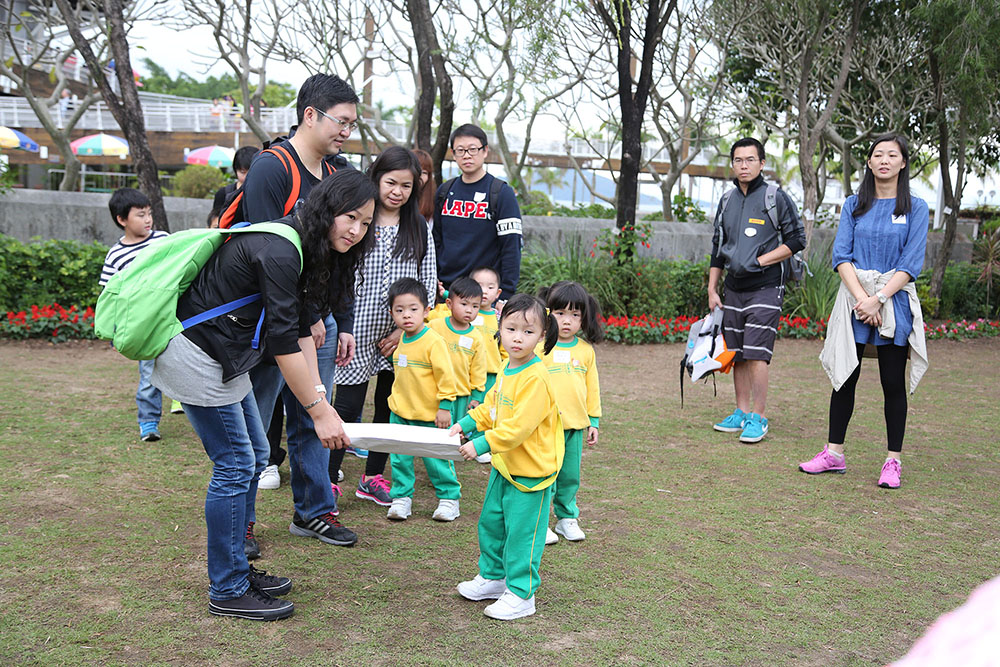 2014年11月29日(星期六) 家長教師會為幼兒班舉辦「親子旅行~大埔海濱公園郊遊樂」。家長們踴躍報名,參加人數達400多人。當日早上我們乘坐9輛旅遊車浩浩盪盪地從灣仔金紫荊廣場出發,到達大埔海濱公園後,先拍攝團體照,然後便開始進行集體親子遊戲,包括匙蛋賽、彩傘及報紙運球;過程中,家長們也很投入活動當中,集體遊戲過後便是自由活動時間,可到參觀不同的景點,包括香港回歸紀念塔、草地滾球場、緩跑徑、昆蟲屋、自然生態花園、西式花園和模型船水池等,某些幼兒亦自備了吹泡泡及放風箏活動。最後在草地上進行野餐。吃過豐富的午餐後便收拾物品回程,這次活動讓大家歡渡了一個既溫馨又愉快的週末。