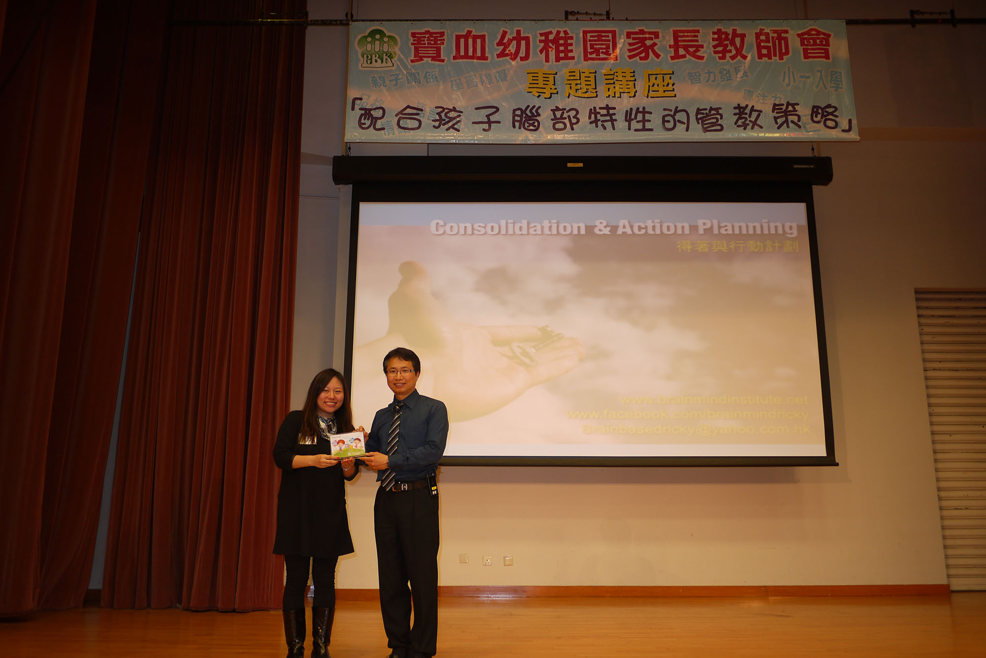 繼去年11月本園家長教師會邀請到腦科學與思維教育學院行政總監陳惠良先生為我們分享「幼兒腦部發展與未來成就」,深受家長們讚賞。在2014年5月9日(五)晚上,家長教師會再誠邀陳先生為我們延續分享專題~「配合孩子腦部特性的管教策略」。內容包括:威嚇責罵對孩子腦部的長短期影響、資優腦的識別與不同的培育模式、避免刺激孩子情緒的有效管教策略等。你看! 今次的講座家長們也同樣投入及享受講者的經驗分享。