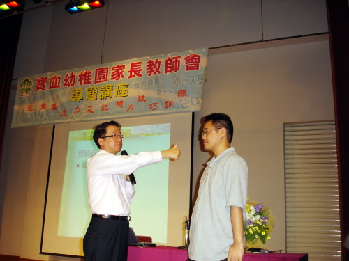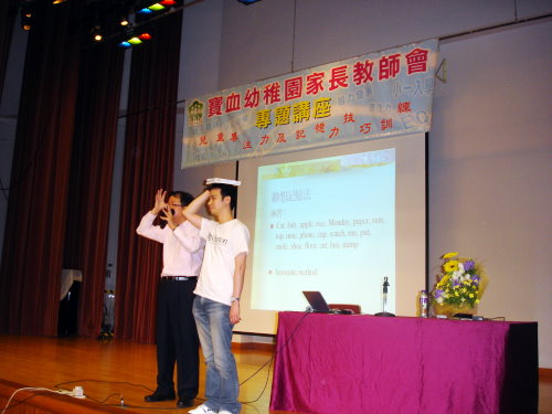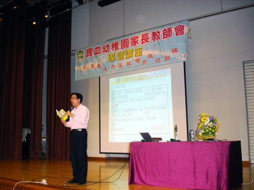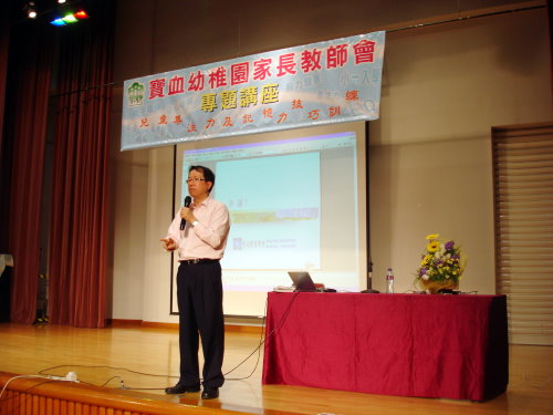 2009年4月24日(星期五)晚上本園家長教師會舉辦了「家長專題講座」邀請到香港康復學會主席譚志宏先生講解---「兒童專注力及記憶力訓練技巧」,內容包括:兒童專注不足原因、專注力不足是否等於過度活躍、專注記憶訓練方法、感覺統合理論與技巧等輔導策略。當晚出席的家長非常踴躍,有140多人參加。透過經驗豐富的講師用輕鬆、活潑生動方法即場教授一些肢體及感官活動,讓家長們親身體驗提昇孩子的學習專注力及記憶力。家長們都很滿意這次的講座內容,覺得很有用;希望能再次安排同類形的講座。有關當晚譚先生的專題內容,將會在網上發放,請大家留意!