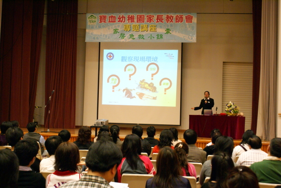 2008年3月13日(星期四)晚上,本會很榮幸邀請了香港紅十字會急救講師鄺穎儀女士為大家舉辦專題講座---「家居急救小錦囊」,講解常見於兒童發生意外時的急救方法和家居意外個案分享。因現時流感高峰期,我們即場加插教導家長預防流感的方法。導師講解幽默風趣,用真實例子演譯個案分享,令大家非常投入。