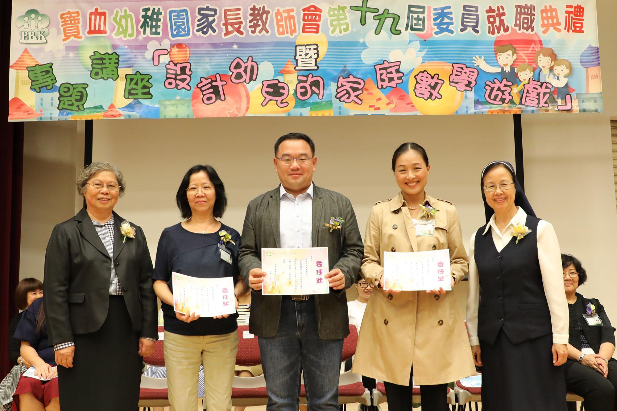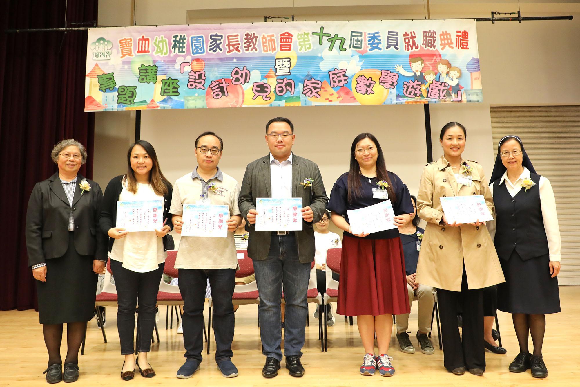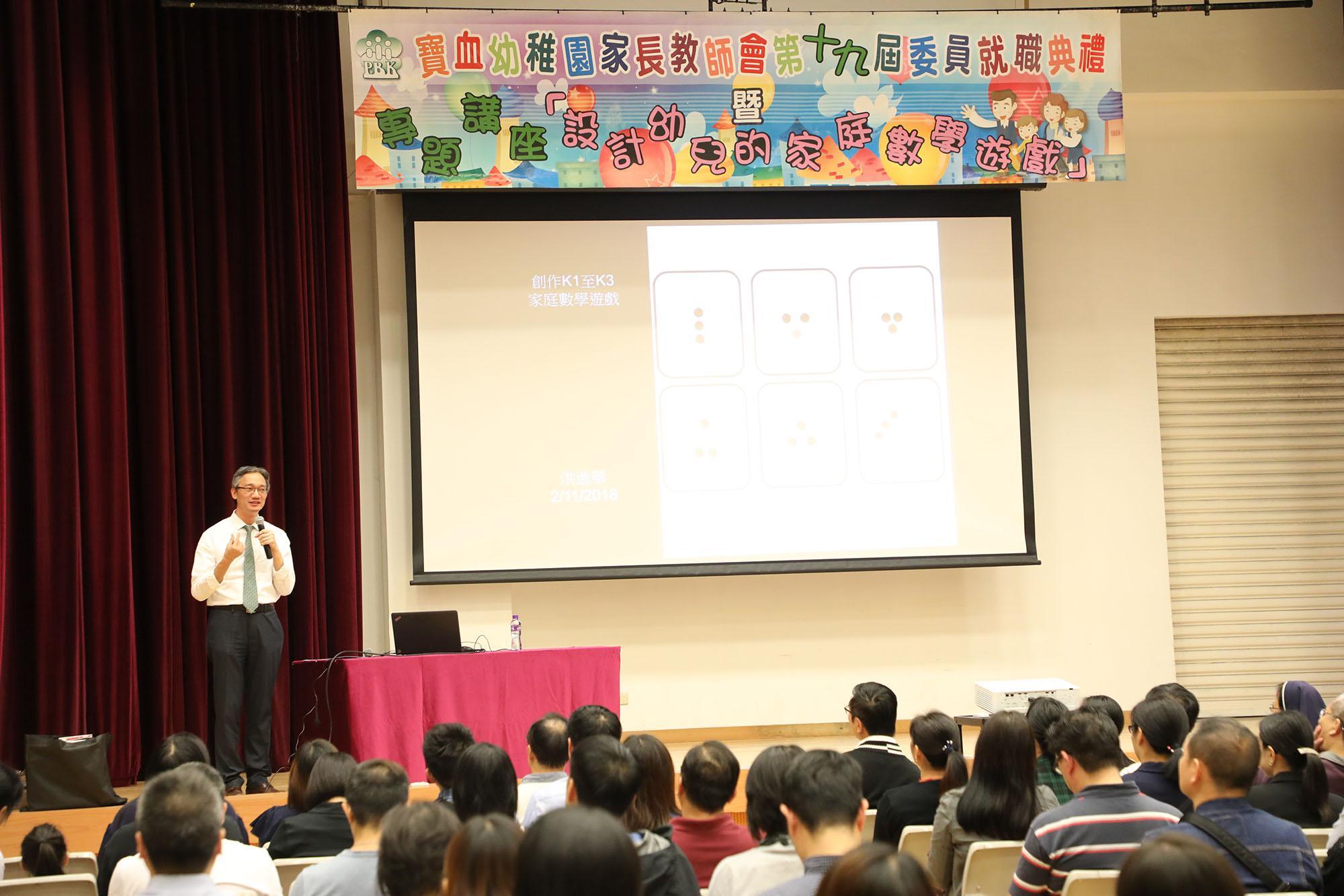 2018年11月2日(五)晚上,本園家長教師會於禮頓山社區會堂舉行「第十九屆委員就職典禮」暨『專題講座』。當晚新一屆委員獲校監區綺雯修女頒發委任狀,並在家長們見證下宣誓就職。我們更邀請洪進華先生為我們舉辦專題講座「設計幼兒的家庭數學遊戲」。今年5月洪Sir曾分享數學遊戲,家長們好評如潮,十分期待是次工作坊。洪Sir再以設計K1-K3數學概念遊戲為出發點,利用日常生活簡單的物料(例如: 珠仔、鈕扣、繩子、廁紙筒、紙杯……等)作教材,教導家長在家中設計數學遊戲。除了增進親子情誼外,並啟發孩子學習數學的潛能和興趣。