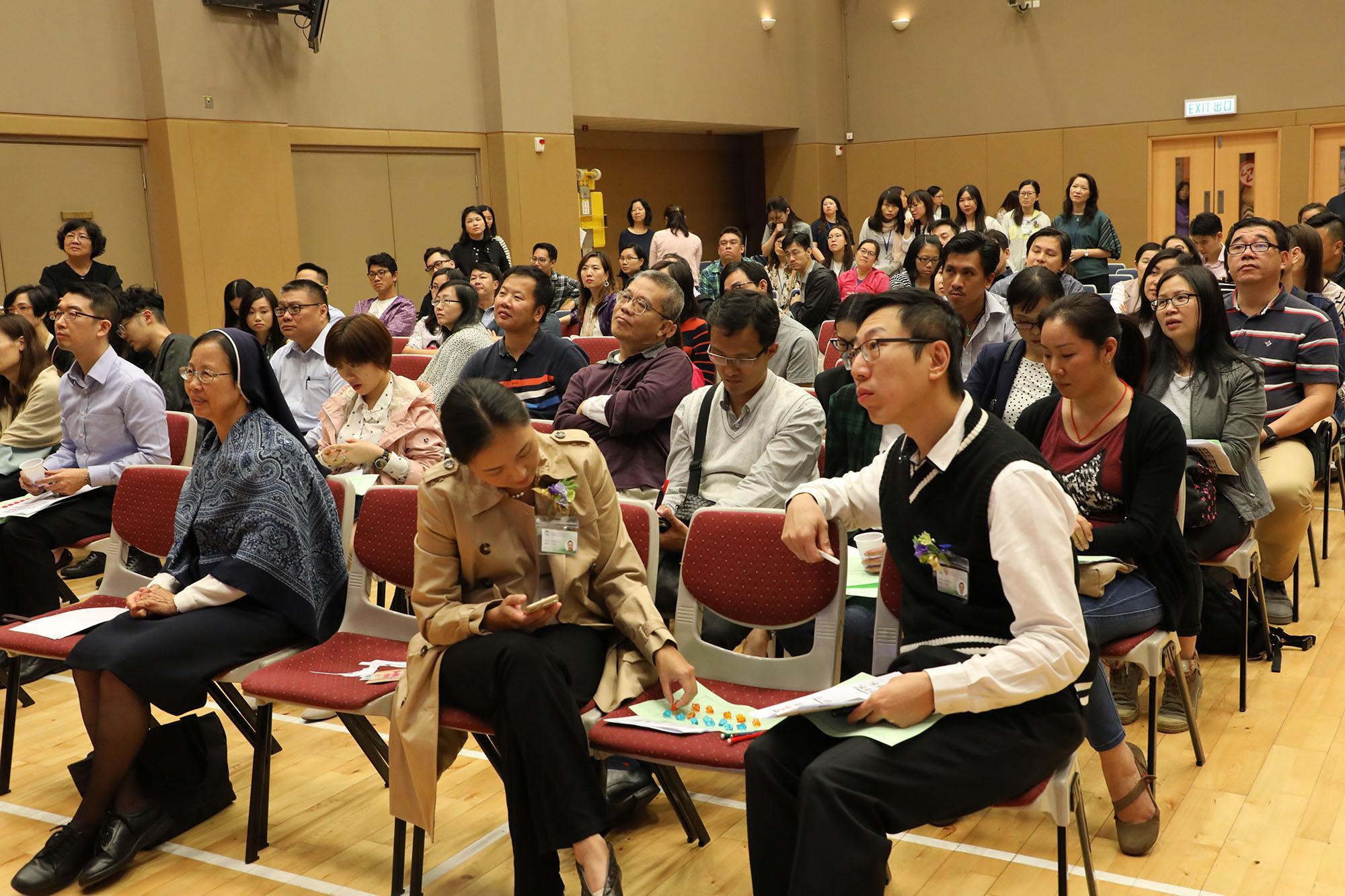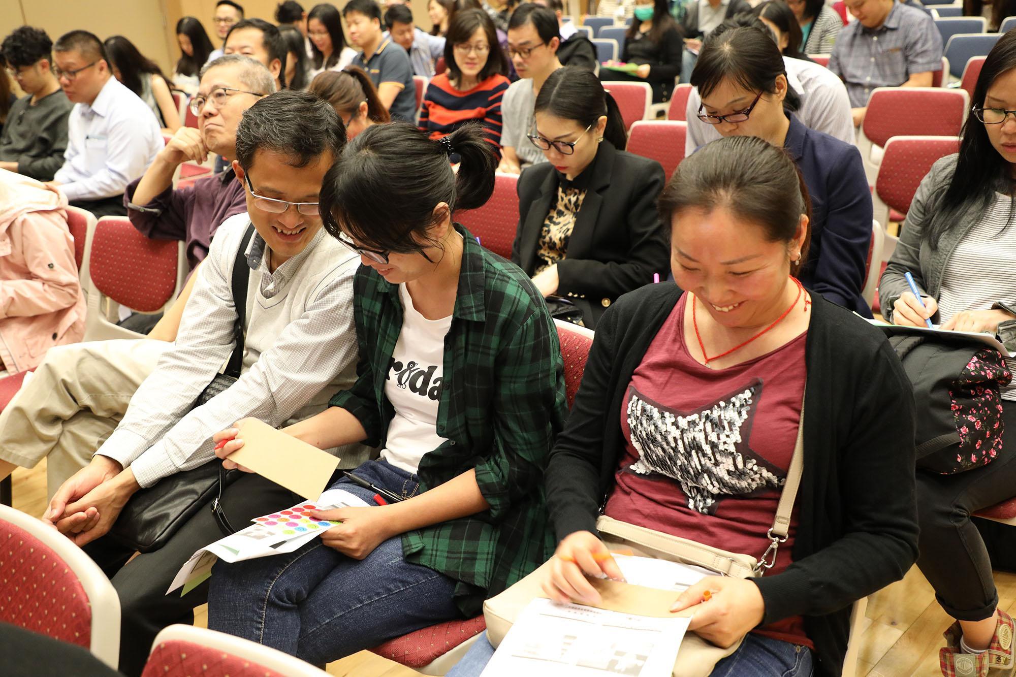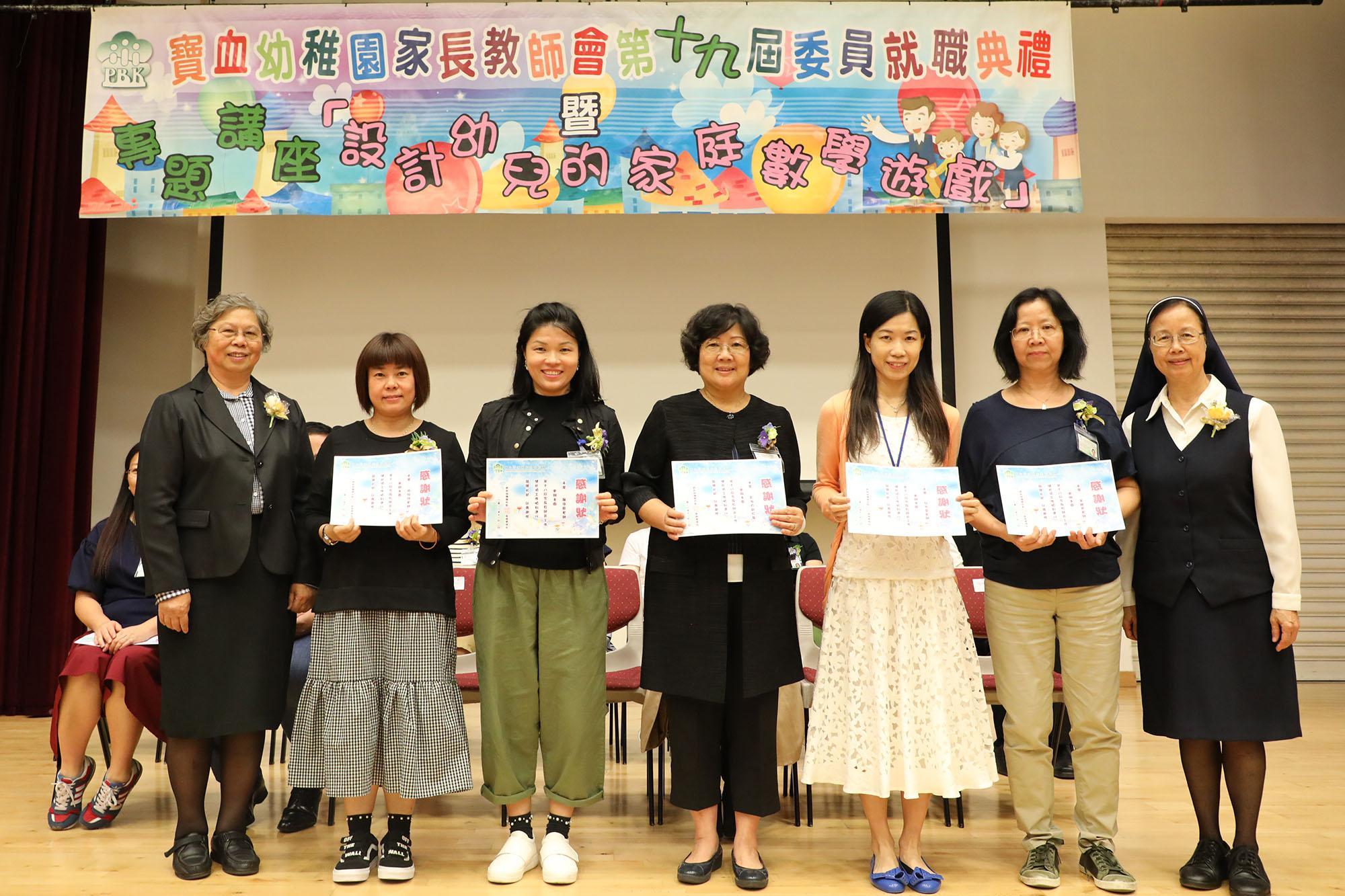 2018年11月2日(五)晚上,本園家長教師會於禮頓山社區會堂舉行「第十九屆委員就職典禮」暨『專題講座』。當晚新一屆委員獲校監區綺雯修女頒發委任狀,並在家長們見證下宣誓就職。我們更邀請洪進華先生為我們舉辦專題講座「設計幼兒的家庭數學遊戲」。今年5月洪Sir曾分享數學遊戲,家長們好評如潮,十分期待是次工作坊。洪Sir再以設計K1-K3數學概念遊戲為出發點,利用日常生活簡單的物料(例如: 珠仔、鈕扣、繩子、廁紙筒、紙杯……等)作教材,教導家長在家中設計數學遊戲。除了增進親子情誼外,並啟發孩子學習數學的潛能和興趣。