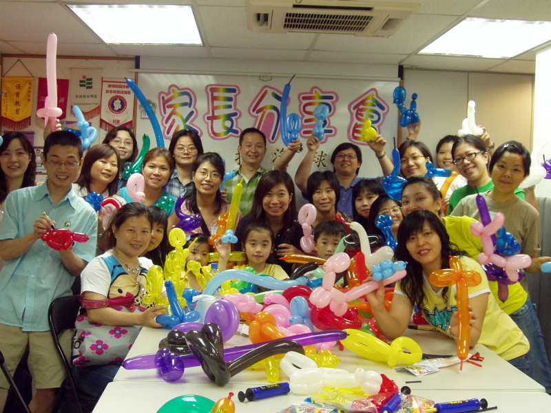 「你懂得扭汽球嗎?」在2006年6月17日(星期六)上午本園家長教師會開辦家長工作坊--「扭扭汽球」,由主席陳玉蓮女士及家長韋暹梅女士主持。魔法開始:一條長長的汽球,只要輕輕的一扭,便可變成一把劍、一隻小狗、一朵花、一頂皇冠…。突然,呯!呯!呯!汽球破了,笑聲此起彼落,扭汽球帶出無限歡笑及樂趣!