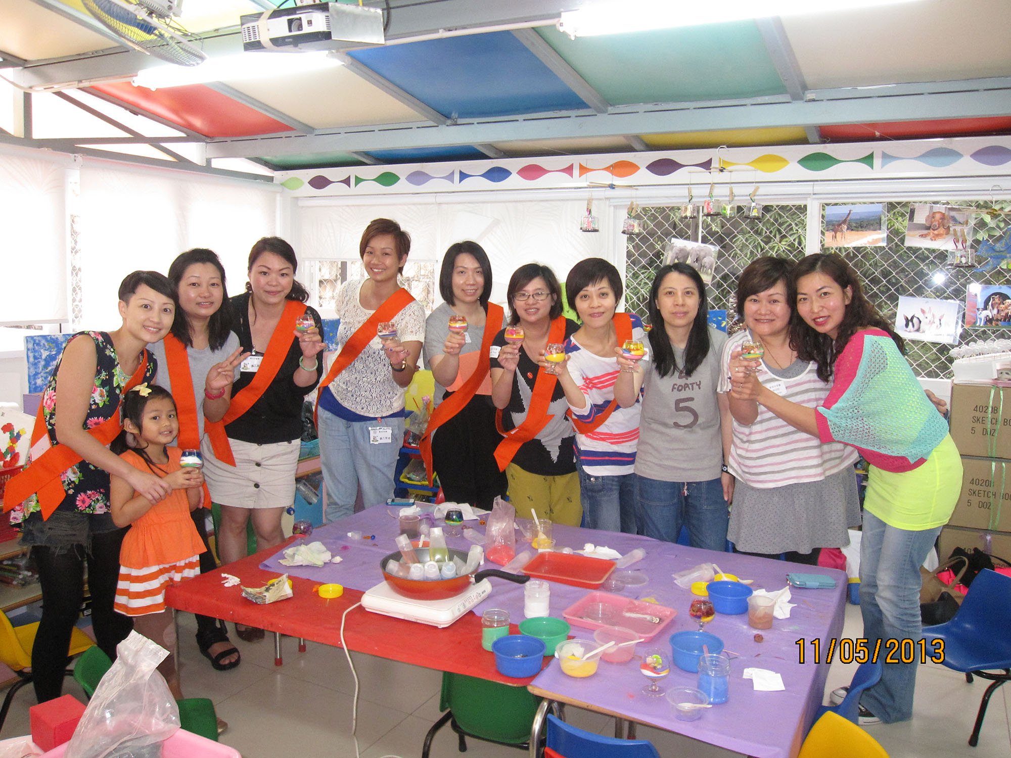 2013年5月11日(六) 家長教師會舉辦家長分享會「小手工~啫喱蠟燭杯創作」,參加人數非常踴躍有20多人。先由周崇立及黃紀言家長作導師示範製作「啫喱蠟燭杯」過程,大家便興奮地動手做~倒彩沙、擠蠟、砌公仔及貝殼等裝飾物。你看!透過導師悉心的指導和家長們精心的設計,大家都創作出一杯別俱心思的蠟燭杯呢!