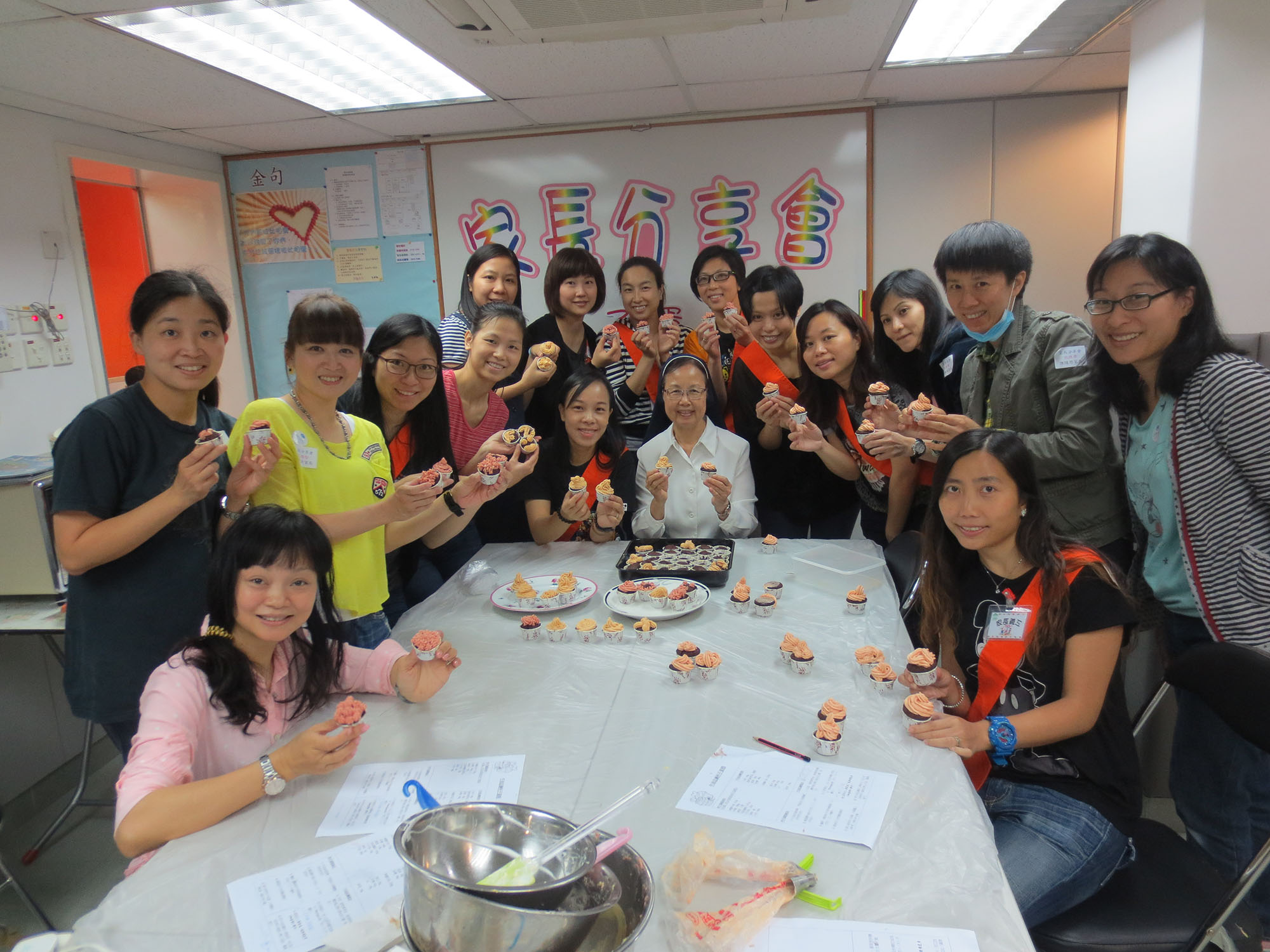 2015年4月25日(星期六)舉行了本年度第一次「家長分享會」,參加者非常踴躍,我們邀請了低班勇學生謝懿芯的媽媽-謝詠儀女士教授製作杯子蛋糕的技巧,首先是講解材料份量及示範製作的技巧;然後各位家長便開始分工合作地動手做,過程十分順利,最後便是替蛋糕唧上美味的忌廉,美味可口的杯子蛋糕便完成了,大家更一起品嚐,這次的分享會令大家歡渡了一個上午。而第二次的「家長分享會」快將舉行,敬請家長們密切留意!