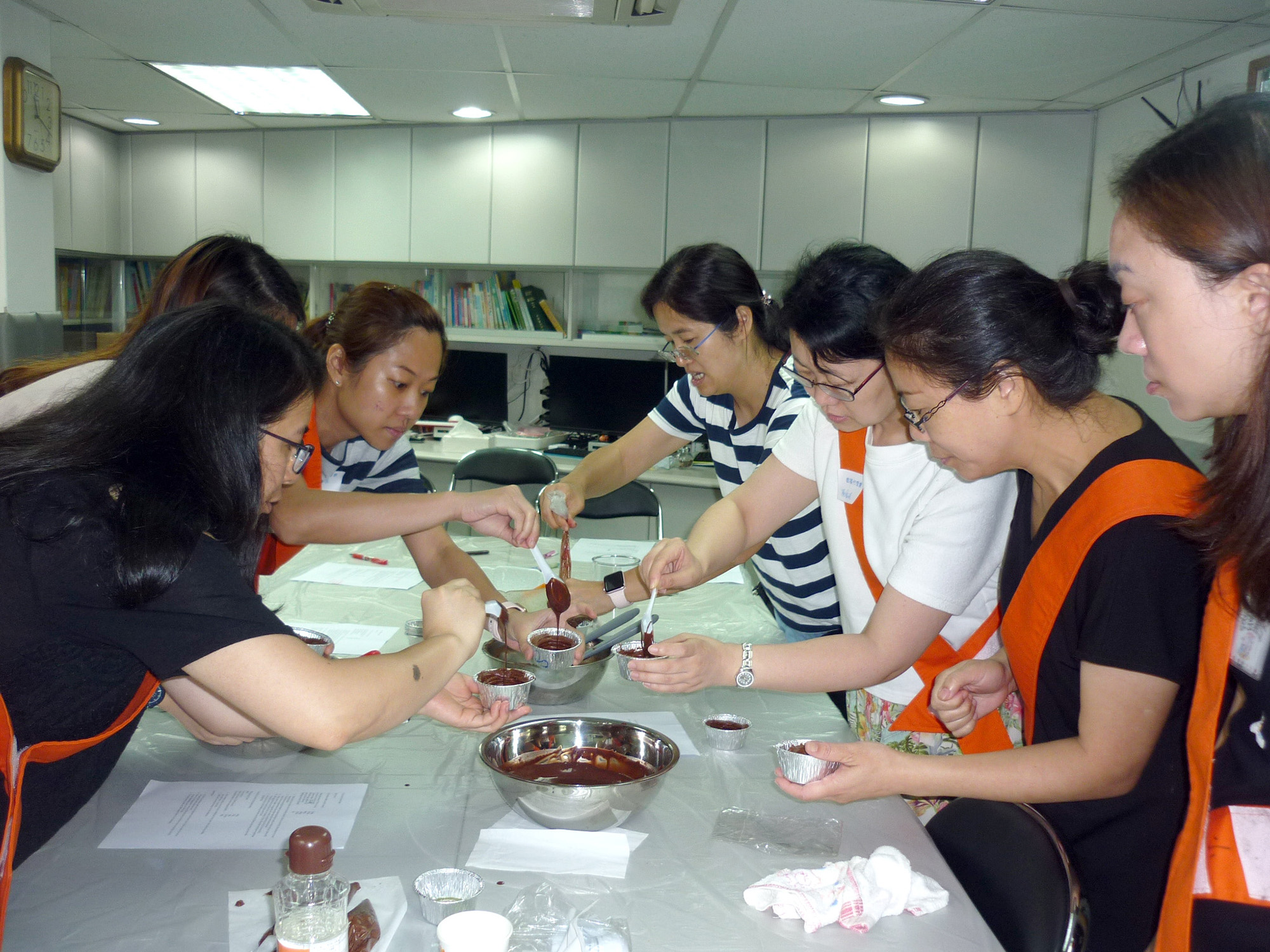 2018年6月9日(星期六)舉行家長分享會「小食嘗試~心太軟蛋糕」,我們邀請了低班孝學生家長李書希媽媽,教授製作心太軟蛋糕的技巧。導師先講解材料的份量及製作蛋糕的技巧,家長們便開始合作動手做。過程中,大家說說笑笑、輕鬆愉快地切牛油、製朱古力漿,最後便是把朱古力漿唧在錫紙兜內放入焗爐。叮的一聲響! 大家歡呼拍手,香噴噴的心太軟蛋糕製成了!