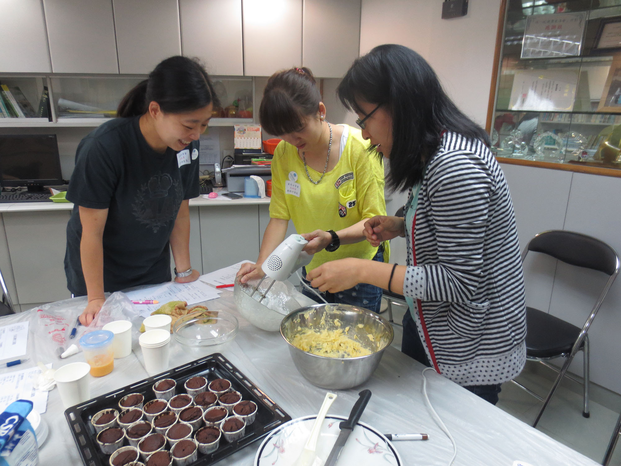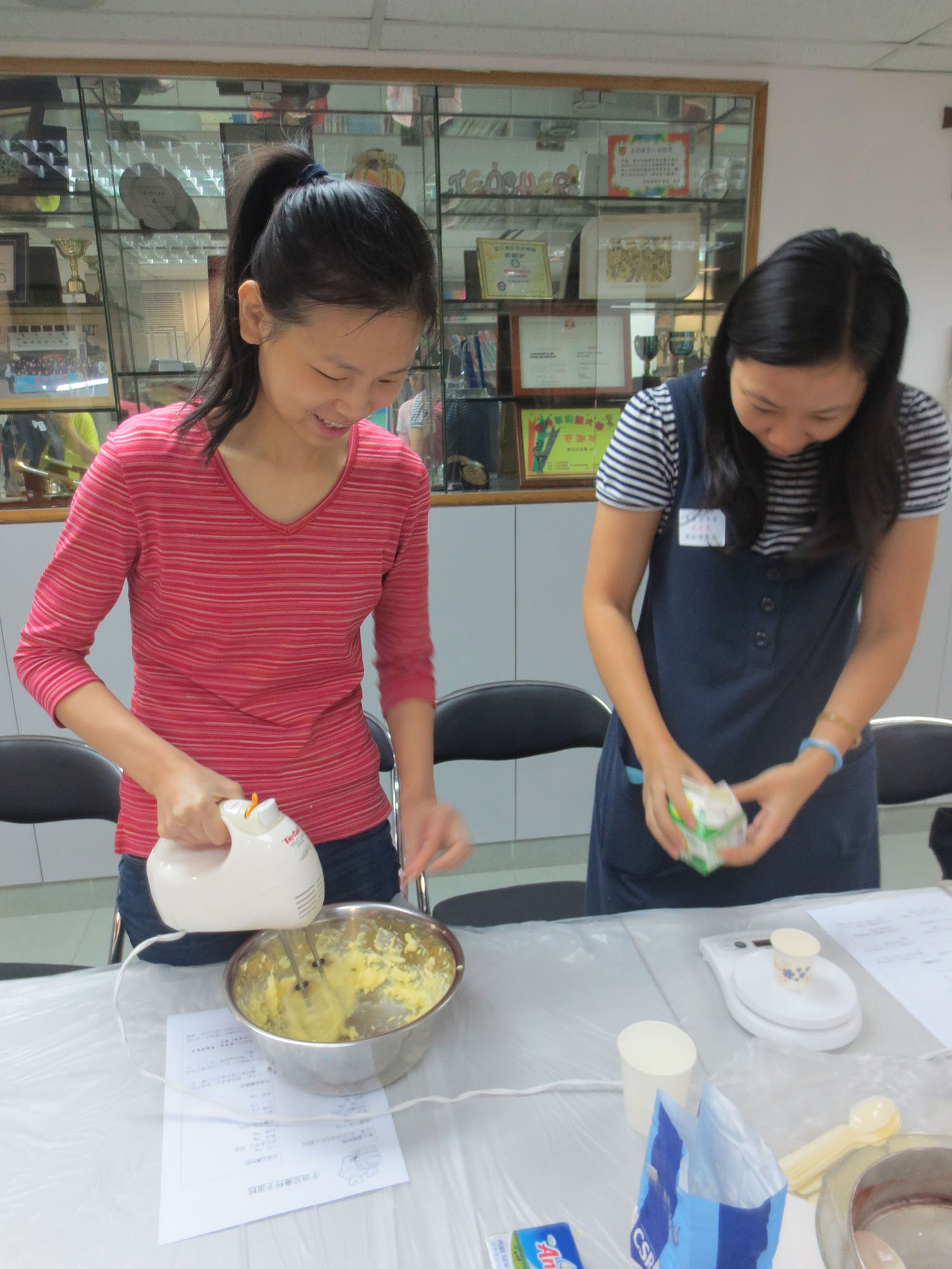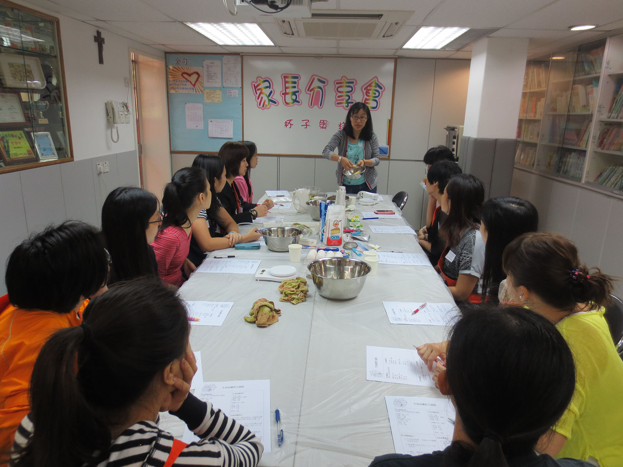 2015年4月25日(星期六)舉行了本年度第一次「家長分享會」,參加者非常踴躍,我們邀請了低班勇學生謝懿芯的媽媽-謝詠儀女士教授製作杯子蛋糕的技巧,首先是講解材料份量及示範製作的技巧;然後各位家長便開始分工合作地動手做,過程十分順利,最後便是替蛋糕唧上美味的忌廉,美味可口的杯子蛋糕便完成了,大家更一起品嚐,這次的分享會令大家歡渡了一個上午。而第二次的「家長分享會」快將舉行,敬請家長們密切留意!