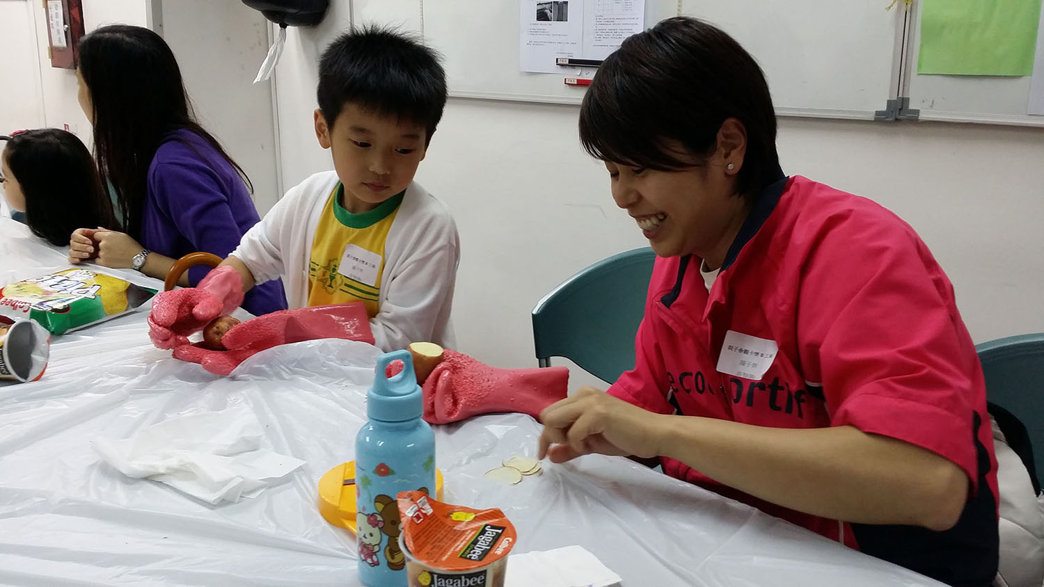 2014年4月12日、5月10日及5月17日,本園安排家長與孩子參觀「卡樂B四洲(香港)工場」。當日由經驗的導賞員講解及介紹「卡樂B」各類產品,更播放幻燈短片講解薯片製作的過程。但由於首兩次參觀活動,生產線出現問題,所以没有進入廠房參觀,改為親子薯片製作,過程中,大家非常享受及投入活動當中,除了讓幼兒能認識到製作薯片的程序及方法外,也學習到分工合作的好處,完成後更一同分享大家努力的成果。而最後一組的參觀隊伍,終於能順利進入薯仔倉及生產線參觀,更有機會品嚐全無調味料的新鮮薯片。是次活動能讓幼兒透過親身觀察,從而獲得生活知識,也擴展了他們的學習領域。